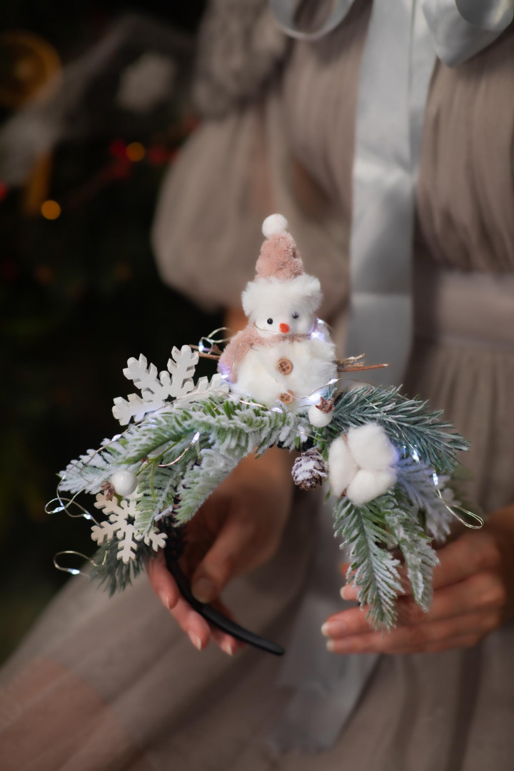 Čelenka je vyrobená z umelého ihličia, snehuliaka, bobuliek a iných aranžérskych drobností. Súčasťou čelenky sú svetielka, vďaka ktorým čelenka krásne svieti.