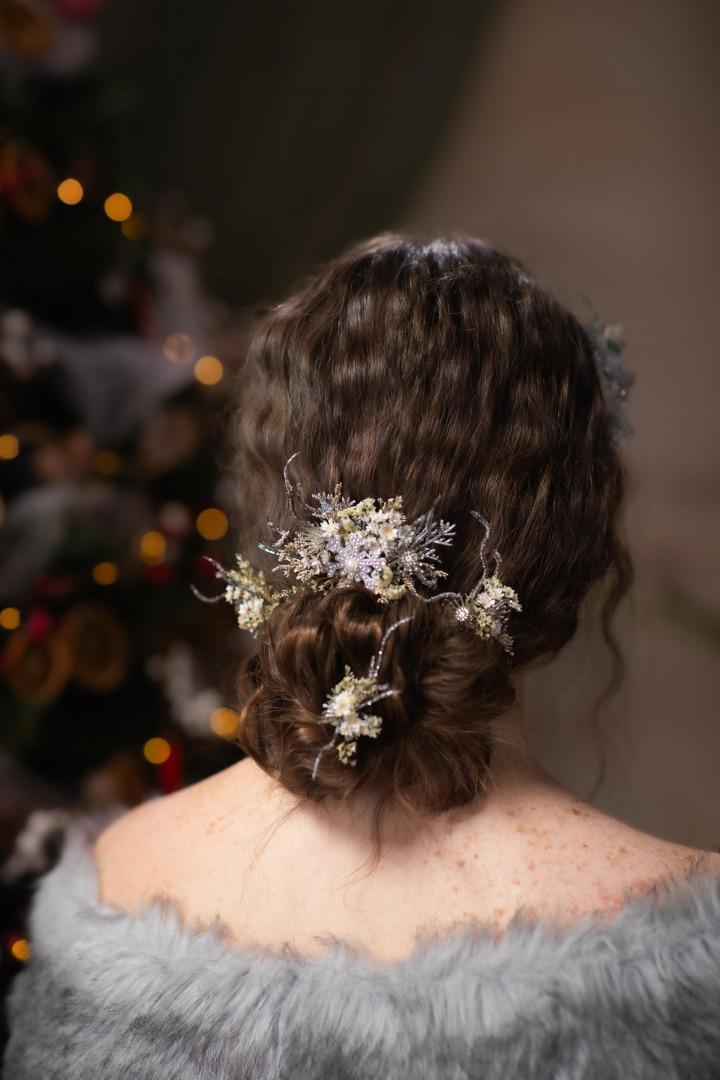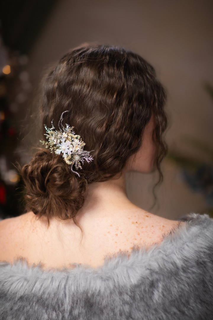Christmas/winter flower hair comb and hairpins with flake. Glam frozen desing, suitable for New Year's Eve party or winter wedding