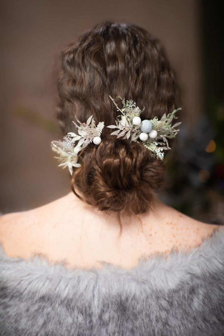 Christmas/winter flower hair comb and hairpins. Glam frozen desing, suitable for New Year's Eve party