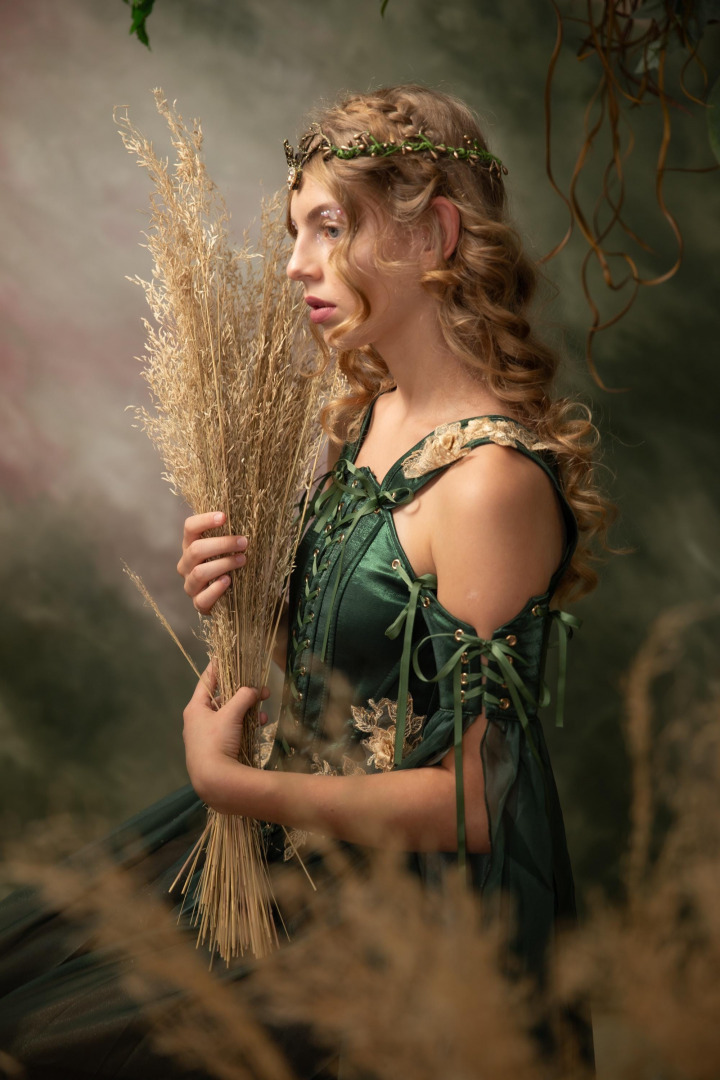 Tiara is made of artificial material, grass, strass, wire and other arranging material.