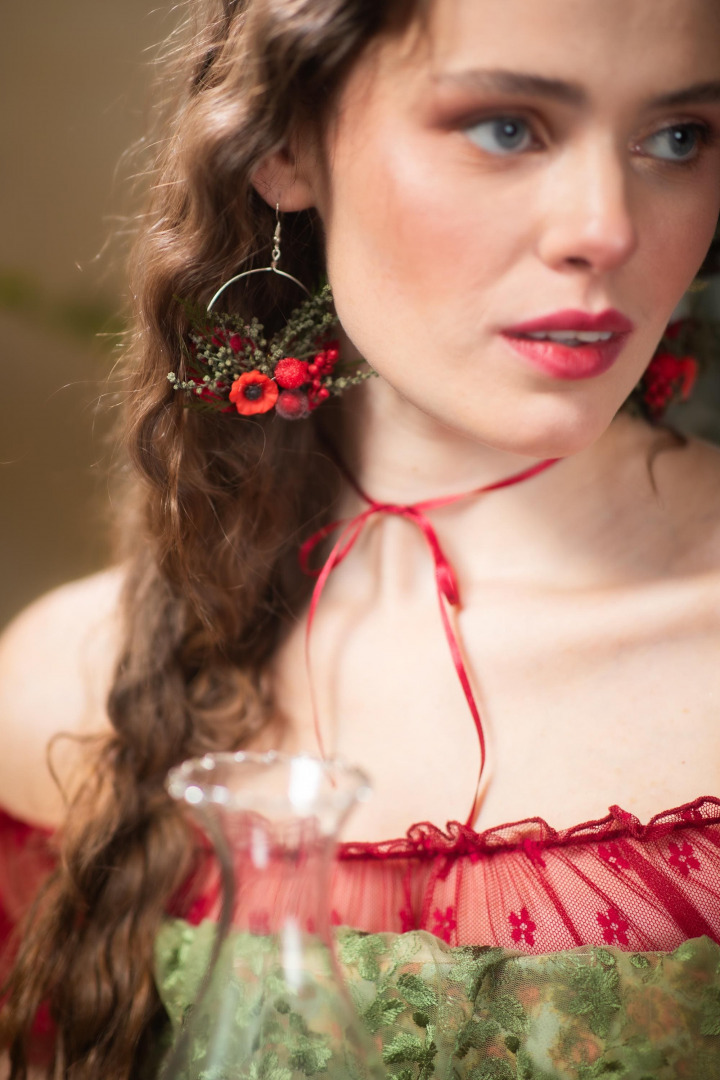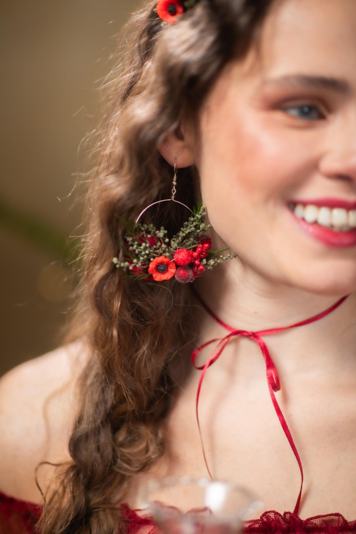 Red circle earrings Unique flower earrings Christmas jewellery Christmas accessories Magaela accessories Gift for her Red Christmas Poppy