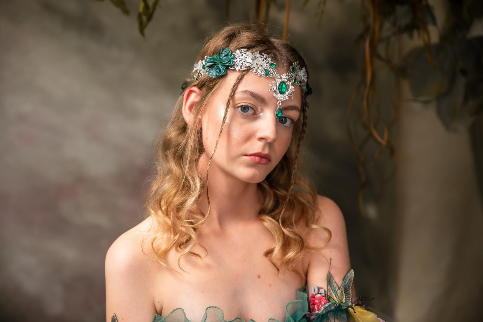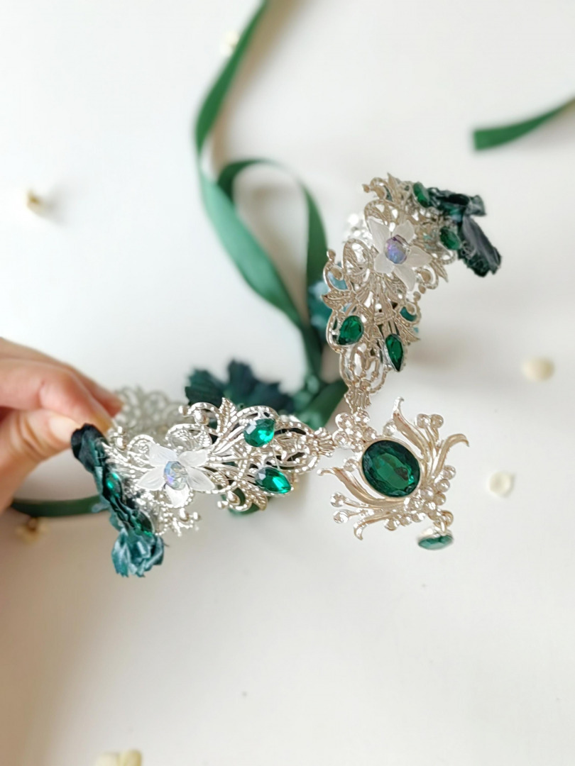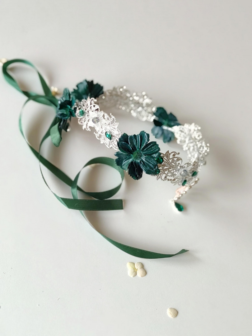 Wedding tiara in emerald and silver colours with crystals:) Perfect for renaissance festivals, parties, weddings, photoshoots, Halloween, carnivals, ...