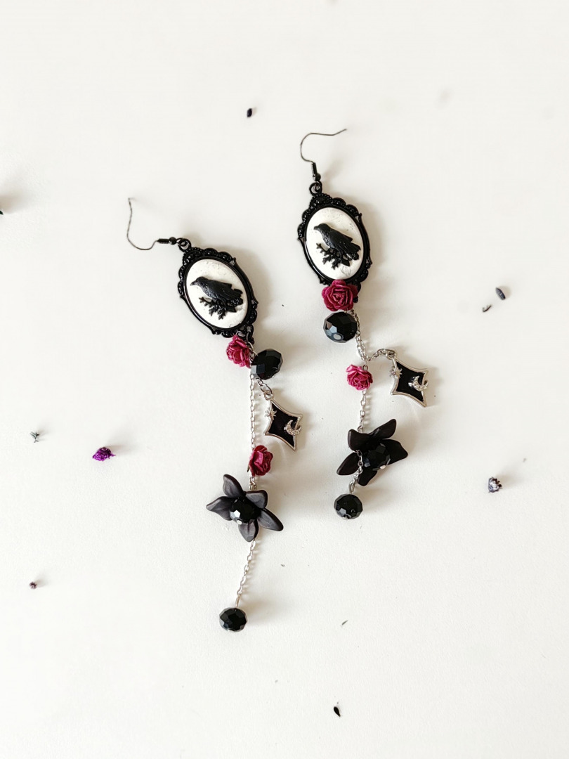 The earrings are made of artificial flowers, beads, chains and other trinkets used for arranging :)