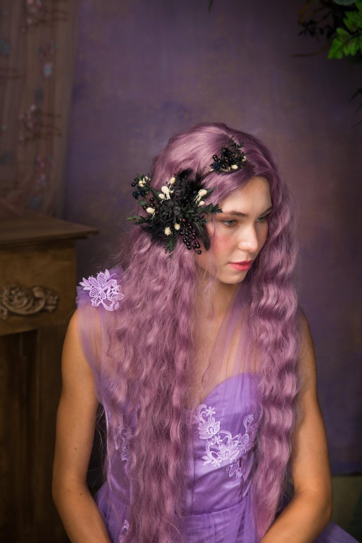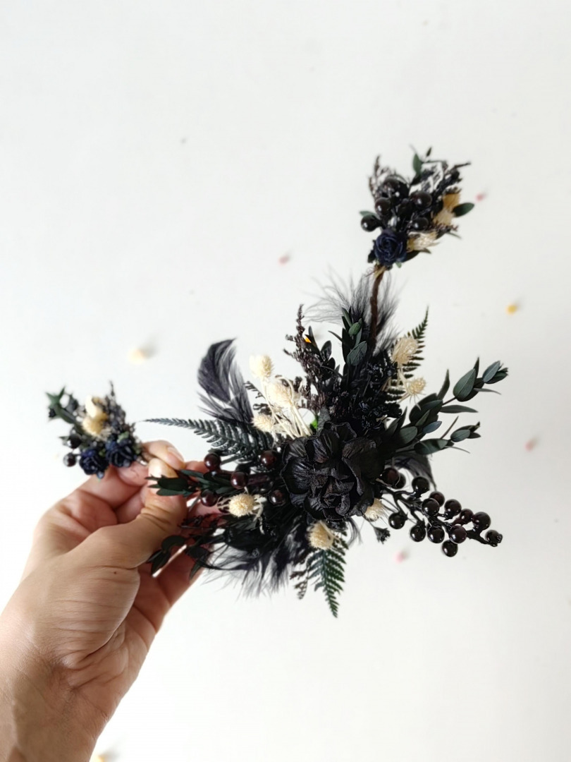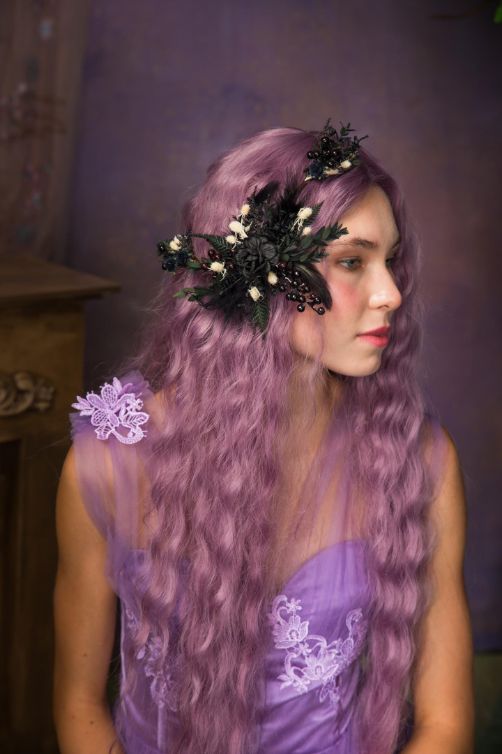 Handmade hair comb or hair vine. It´s bendable/shapeable to perfectly fit your hairstyle! :) Suitable for gothic or autumn wedding . Dark woodland design...