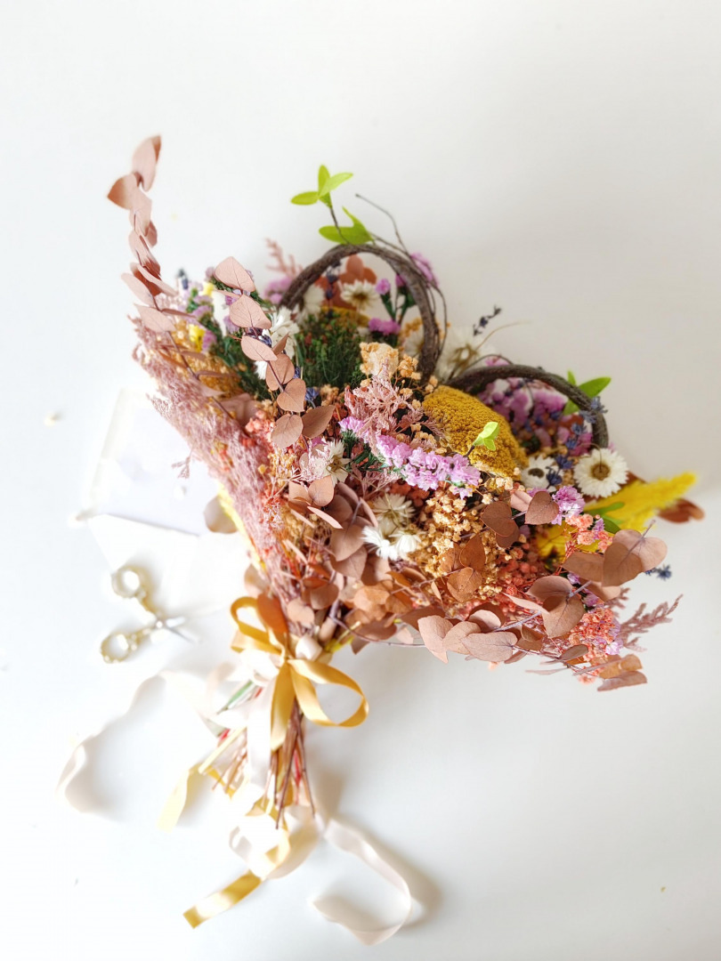 Kytica je vyrobená z konzervovaných, sušených a textilných kvetov, lístkov, trávy, krajky a iných drobností určených k aranžovaniu... Tento prírodný materiál je krehký a hlavne prepravou môže jemne opadávať, no nejde o chybu produktu.