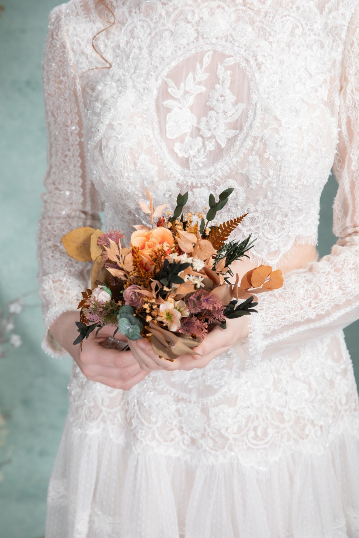 Svadobná boho kytica z umelých a konzervovaných materiálov. Životnosť kytice je pri správnom skladovaní a ...