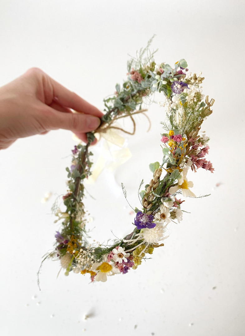 Meadow flower wreath in meadow design. The wreath is made of artificial and preserved material and other arranging material. FRAGILE! ! ! Small pieces of preserved material may fall off, but this is not a product defect. This will not ...