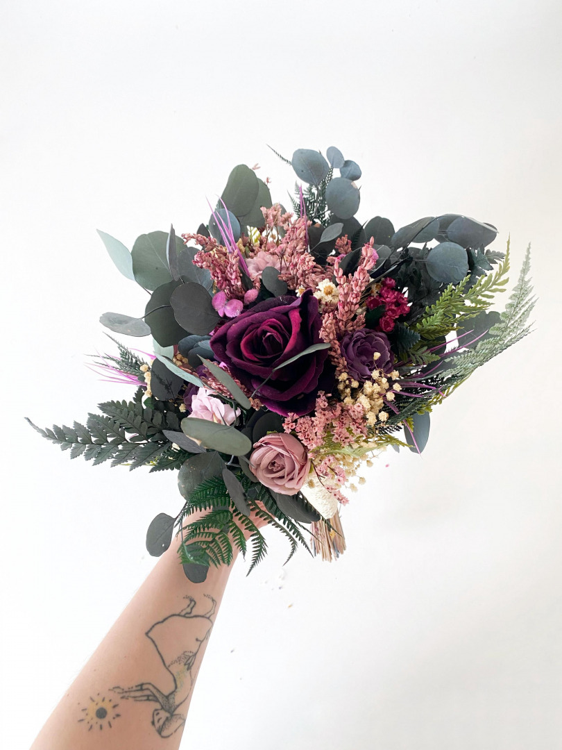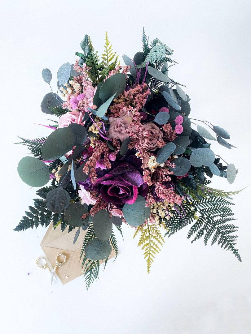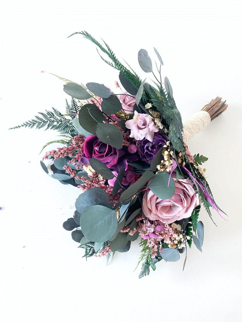 Svadobná boho kytica z umelých a konzervovaných materiálov. Životnosť kytice je pri správnom skladovaní a ...