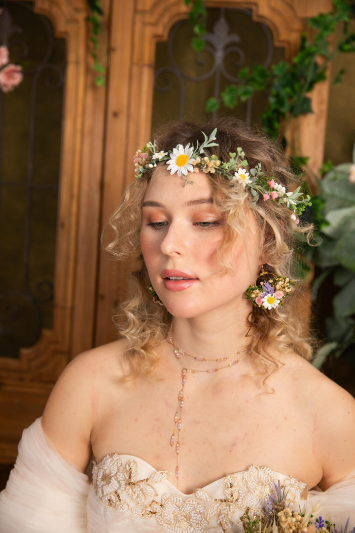 Purple flower circle earringsThe earrings are made of artificial flowers, preserved material and other arranging material. 3cm (1. 2 inches) - weight 5-8gPlease choose the material:1. GOLD IMITATION HOOK (golden imitation wire/circle + ...