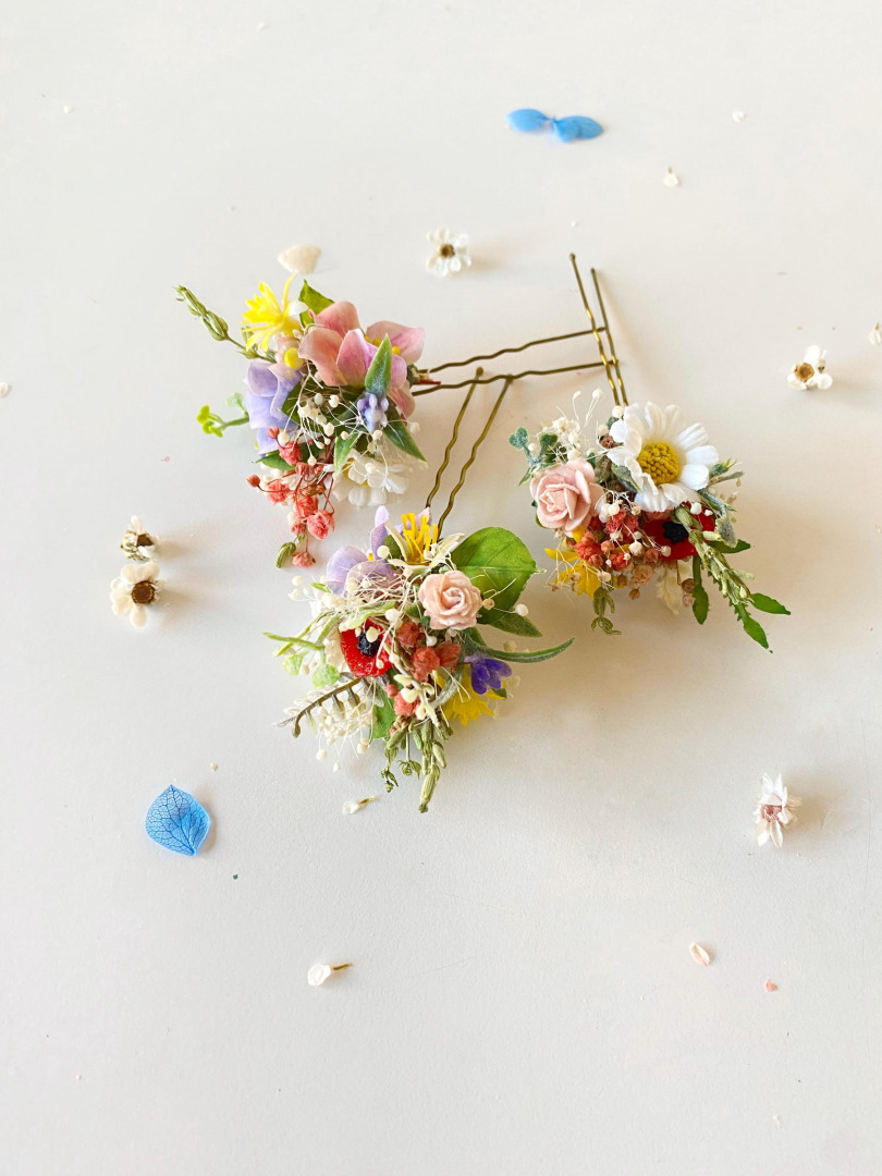 Meadow flower hairpins with wildflowers. Suitable for wedding, prom or for other special occasions.