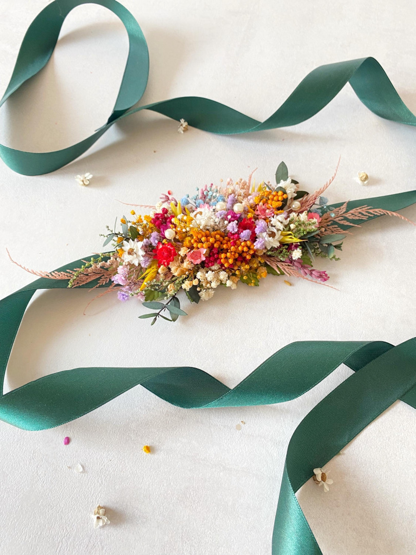 Colourful flower belt. Perfect for weddings or other celebrations. The flower belt is made of preserved and dried flowers, leaves and other trinkets used for arranging :)When stored in dry and dark place, our products last 10-15 years. ...