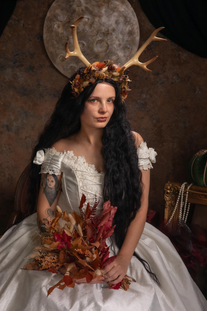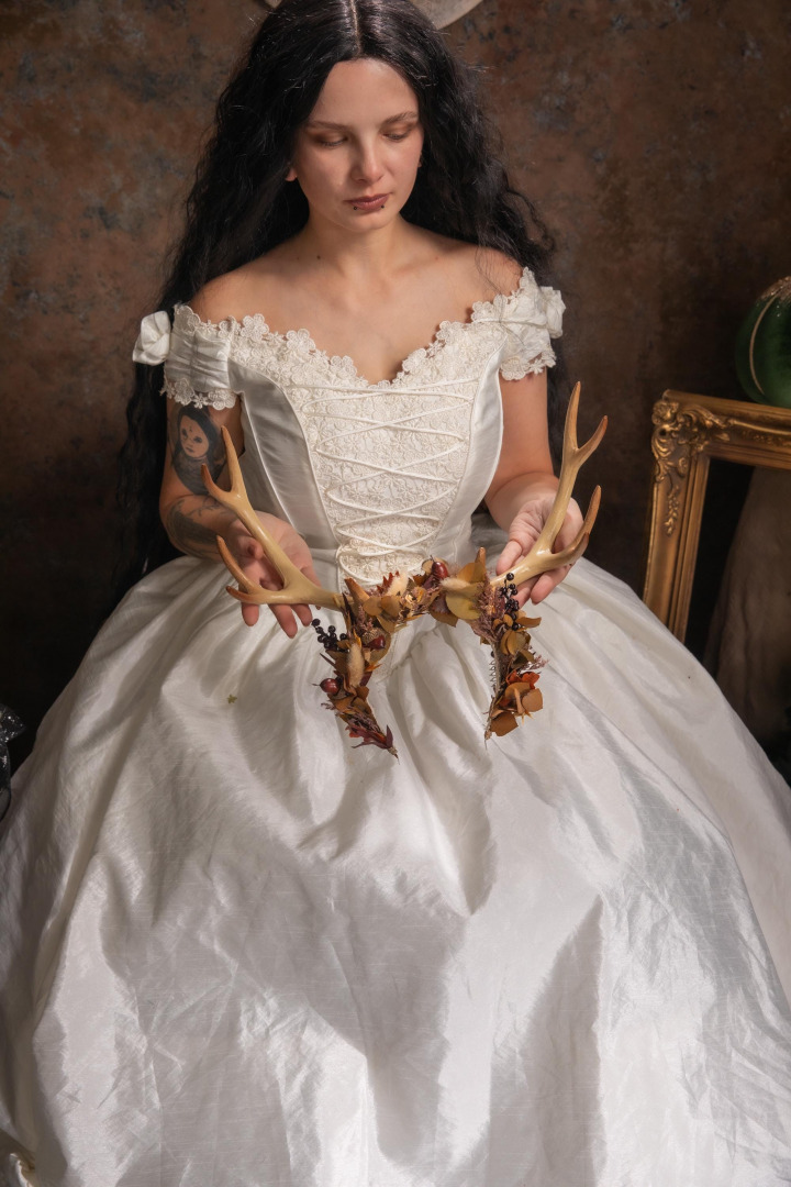 Flower crown with antlers in woodland design :) The flower crown is made of artificial and preserved materials, antlers and other arranging material. When stored in dry and dark place, our products last 10-15 years. We can also make you ...