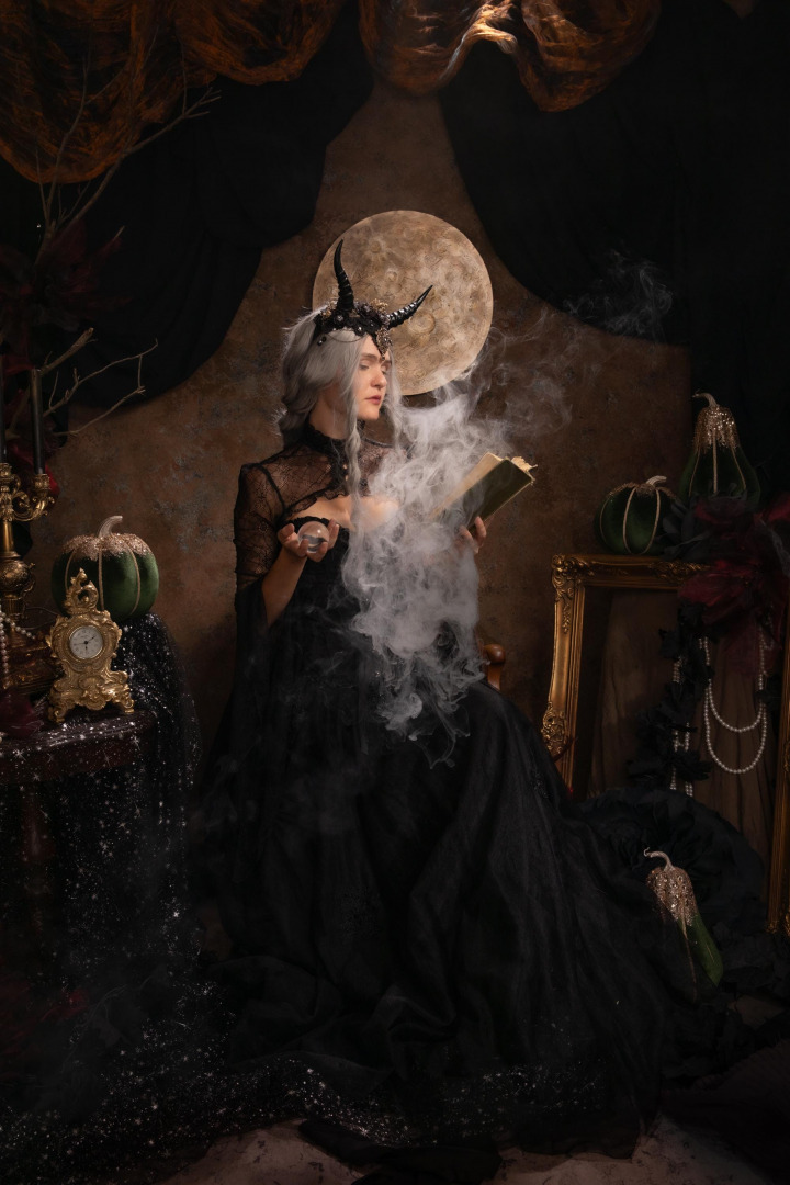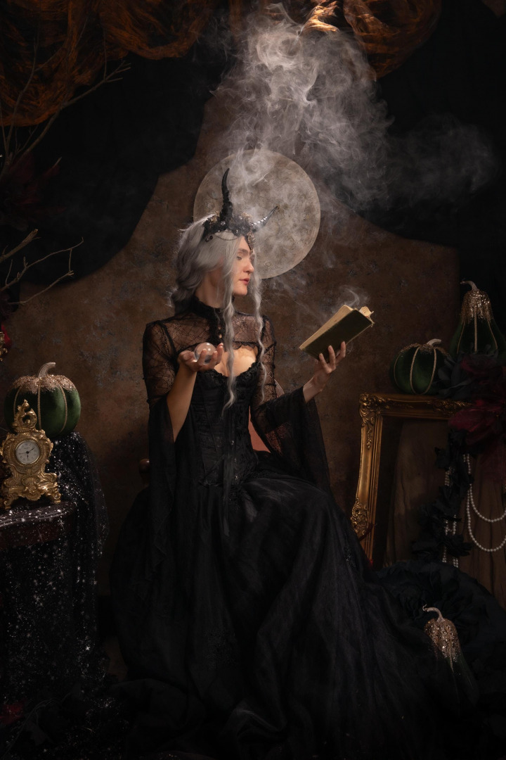 Fantasy pagan flower crown in black color. The flower crown is made of artificial flowers, leaves, grass, horns and other trinkets used for arranging. When stored in dry and dark place, our products last 10-15 years. We can also make ...