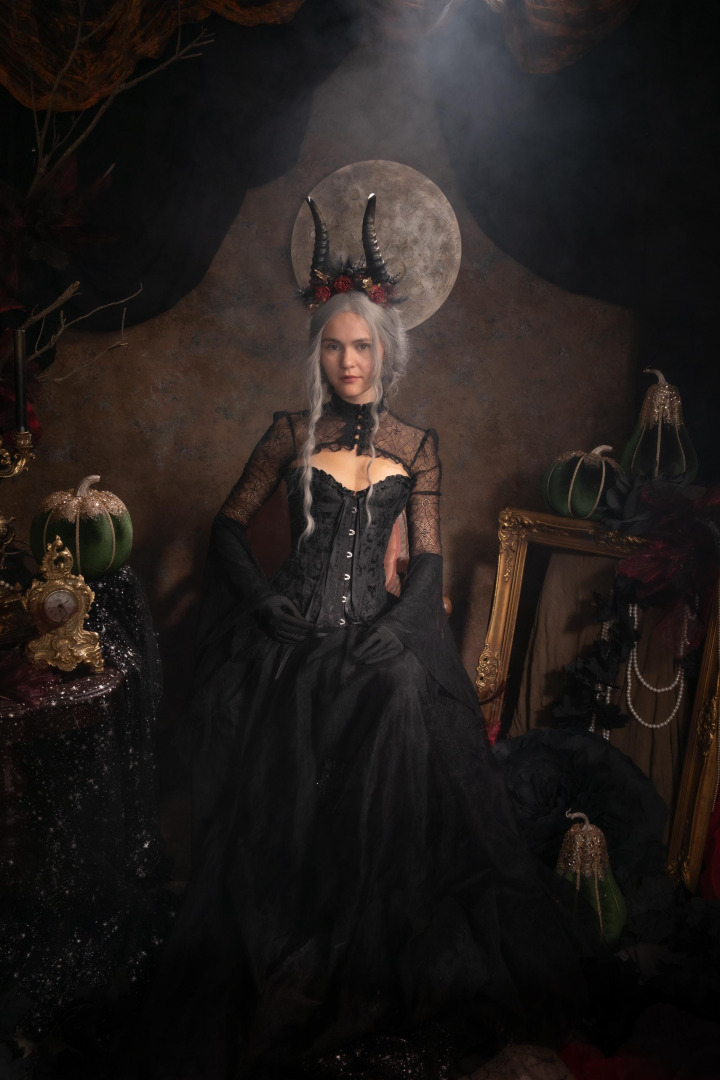 Black Horns Flower Crown: Gothic Wedding Headpiece, Pagan Fest