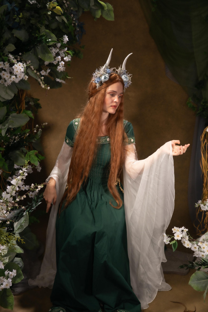 Blue Flower Crown with White Horns: Romantic Floral Headpiece