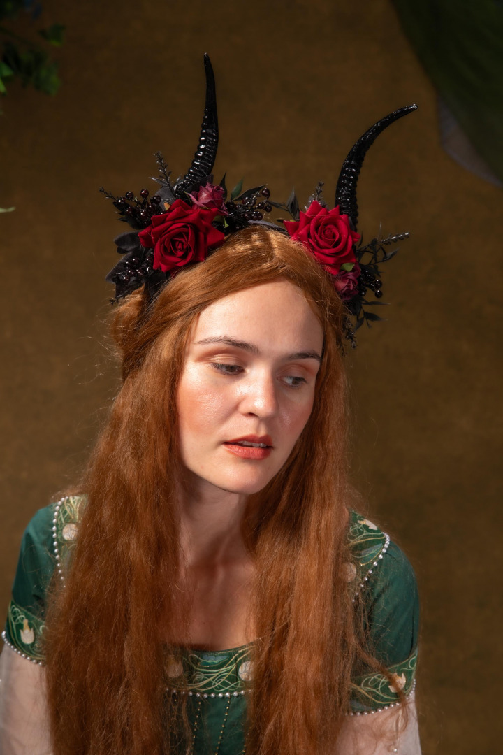Red Rose & Black Horns Crown: Gothic Pagan Headpiece