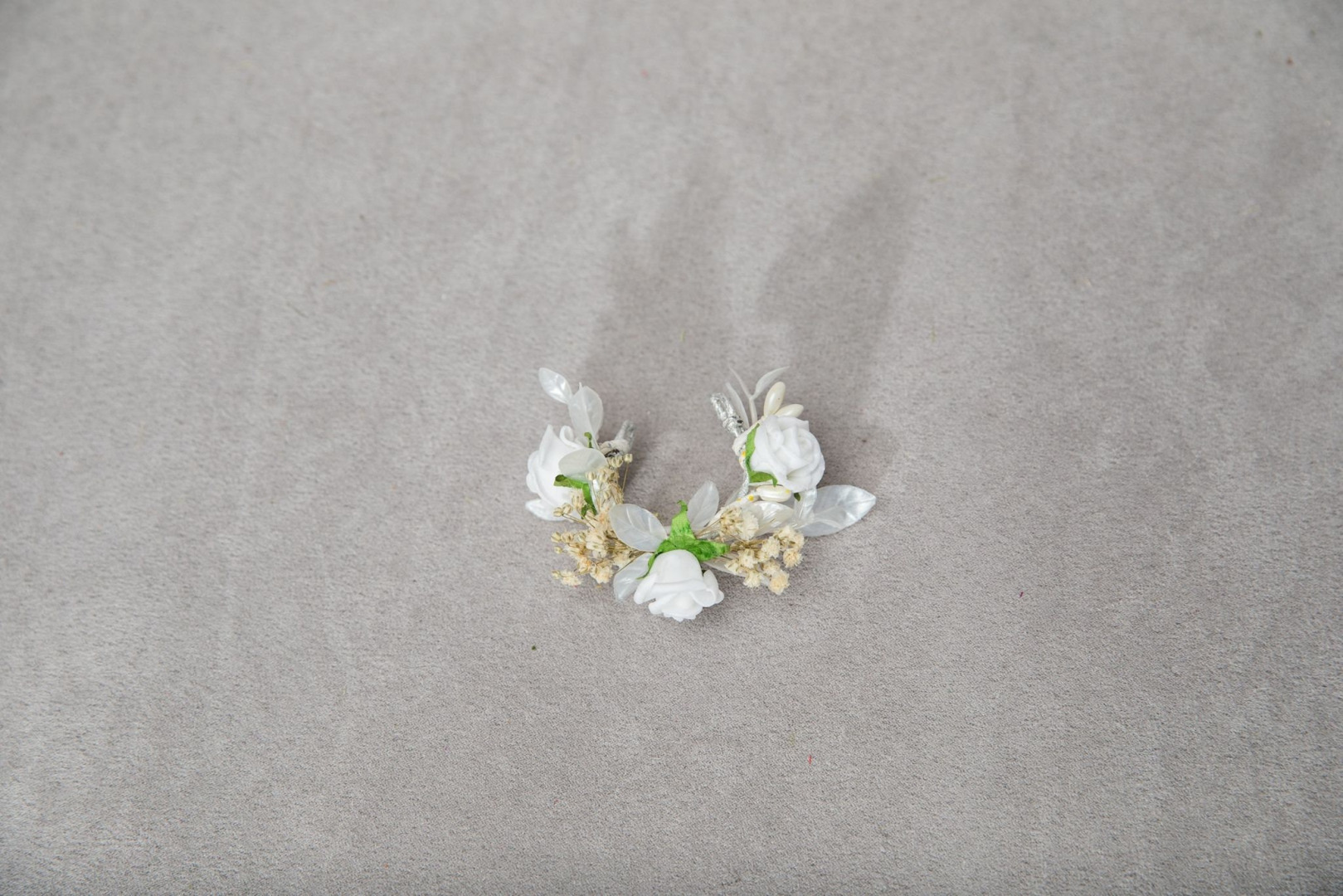 This candle decoration is made of high quality realistic looking textile/fabric flowers, leaves, lace and preserved material. Handcrafted with love. We also offer other headbands, floral belts, bracelets, head wreaths or candle decoration for first holy communion.