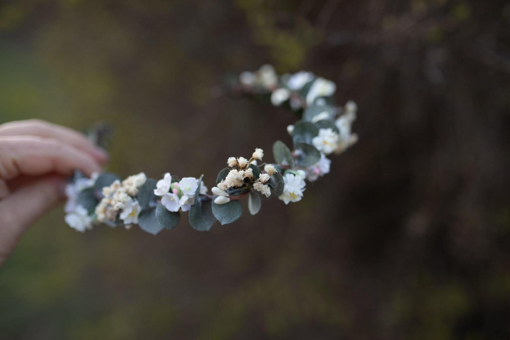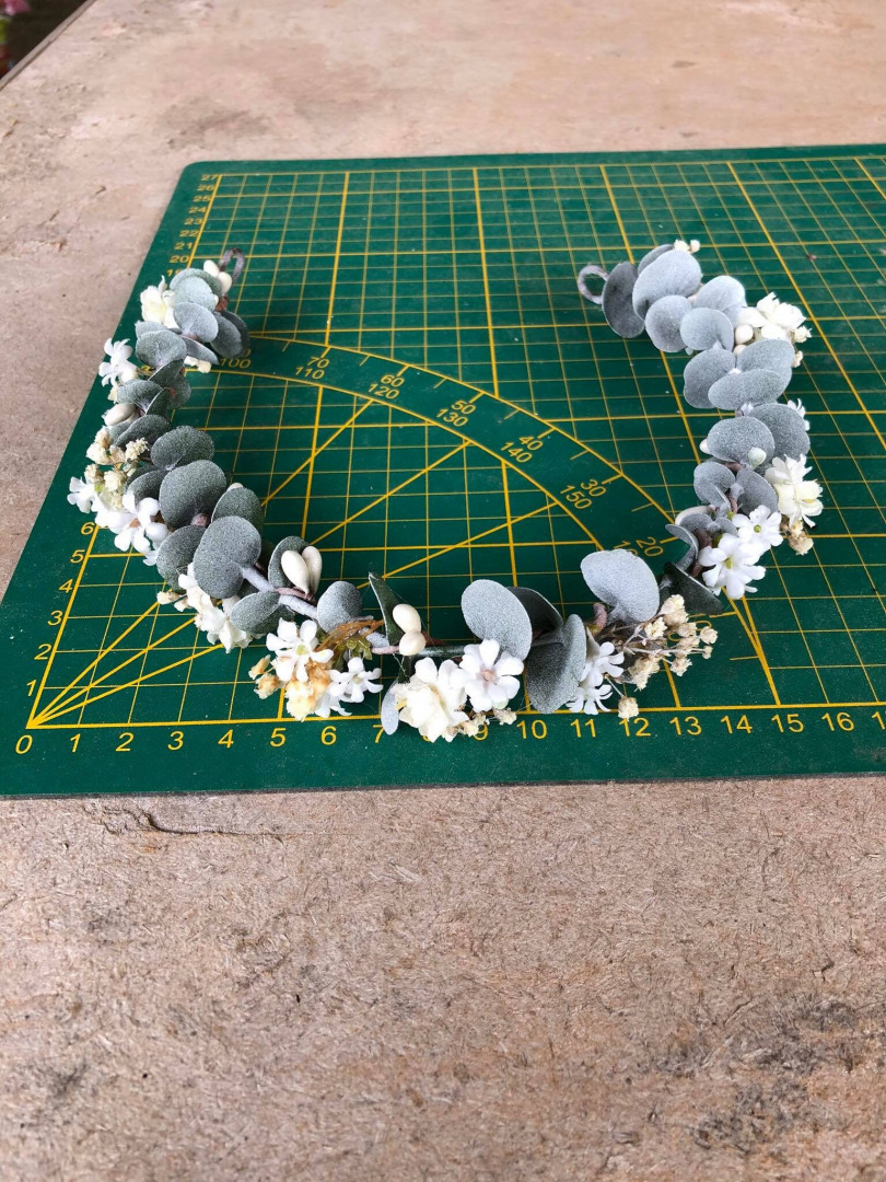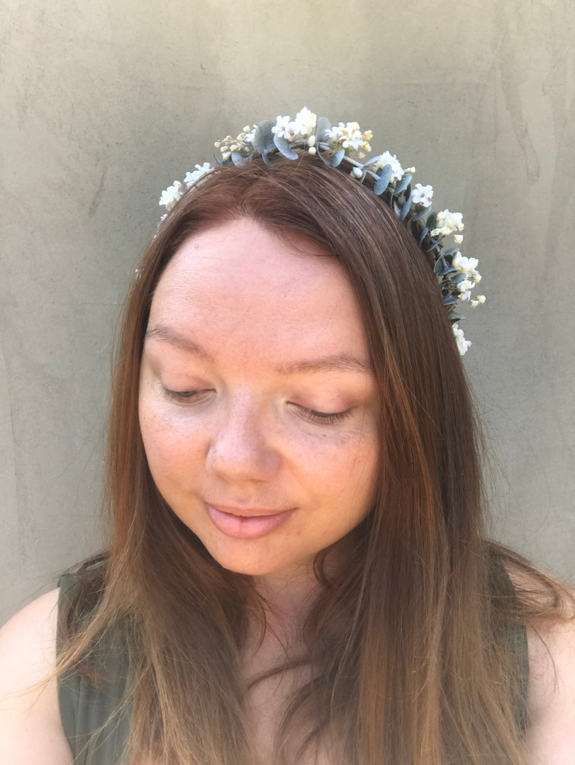 Greenery flower wreath with baby's breath Flower half crown with eucalyptus Bridal hair wreath Wedding half wreath Magaela accessories