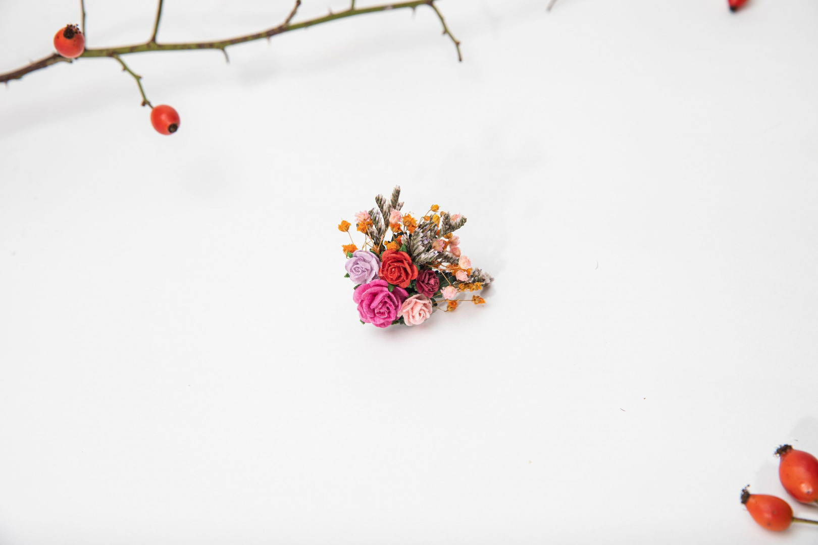 Perfect for weddings, photoshoots, parties or other events. It is made of artificial/fabric flowers, preserved material and other material used for arranging.