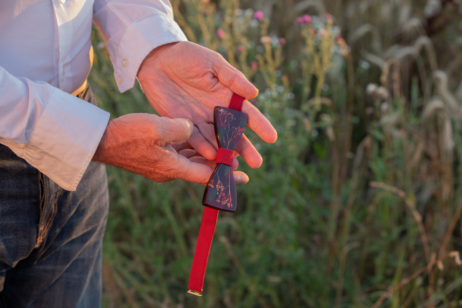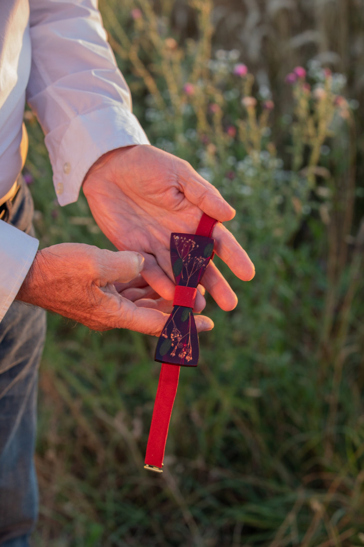 Ručne robený živicový motýlik s kvetmi z našej dielničky. Môže sa kombinovať aj s drevom. Viazanie je kvalitne šité a nastaviteľné, farba viazania sa dá prispôsobiť. V prípade, ak motýlik nie je skladom, doba výroba je 2-3 týždne.