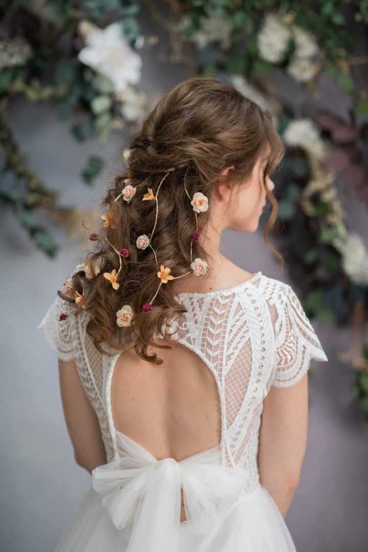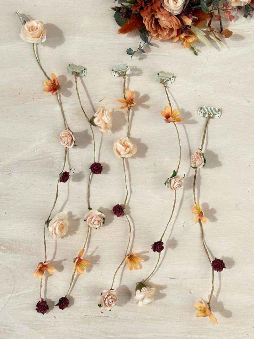 Rustic hair vine with a floral veil for a beautiful boho wedding hairstyle. The hair vine and the veil are mostly made of artificial flowers in earthy tones. The price is for the entire set - hair vine and veil