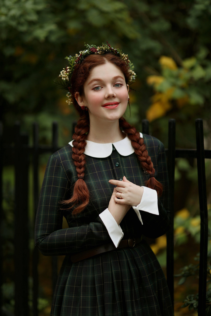 Kvetinový venček v zeleno-burgundy tónoch. Obvod venčeku je 48-53 cm. Veľkosť je univerzálna, venček sa viaže a prispôsobuje viazaním stuhou v zadnej časti.