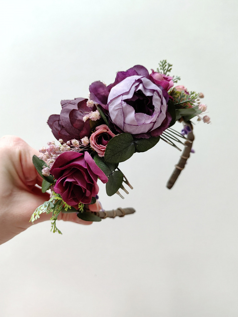 Perfect for weddings, photoshoots, parties, carnival, Halloween or other events. It is made of artificial/fabric flowers, preserved material and other material used for arranging.