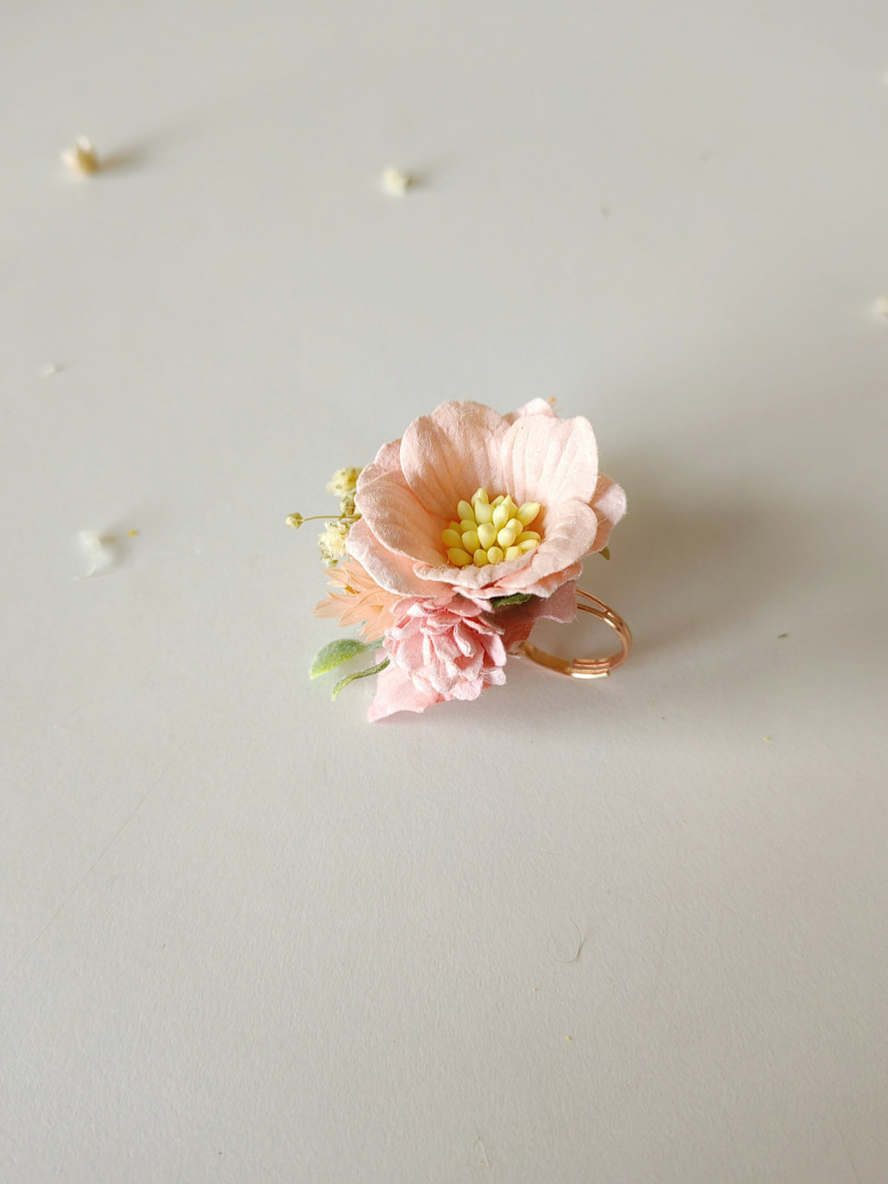 Pastel peach flower ring Boho flower jewelry Floral jewellery Frida style Wedding jewellery Adjustable ring Spring wedding Flower accessorie