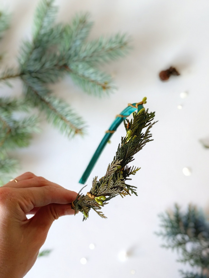 Čelenka je vyrobená z ihličia, bahniatok a iných drobností určených k aranžovaniu.