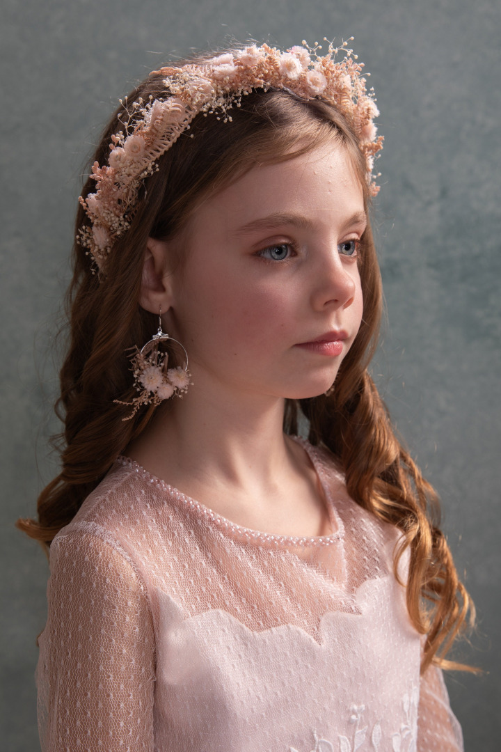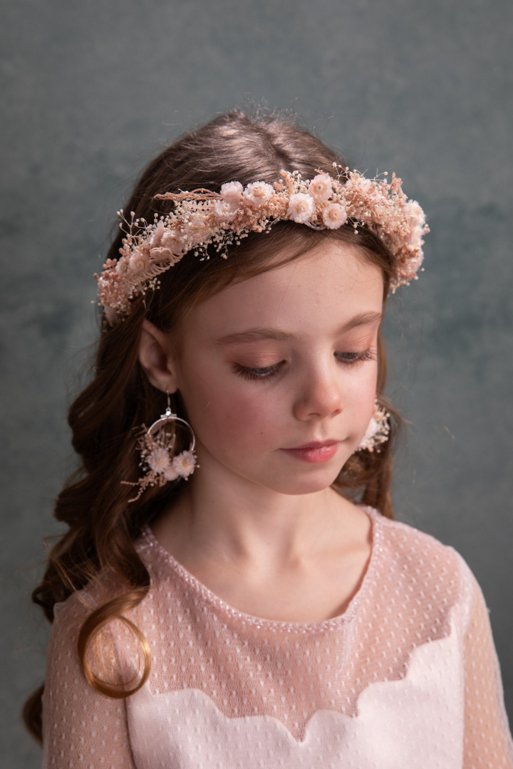 Romantic flower wreath Pale pink headpiece Flower half wreath Holy comunnion wreath Preserved flowers First communion Flower headband