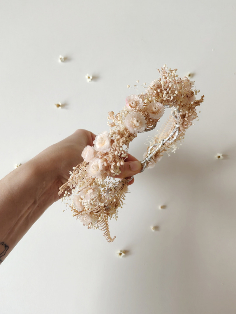 This hair wreath is made of preserved materiasl. Elegant headpiece handcrafted with love.