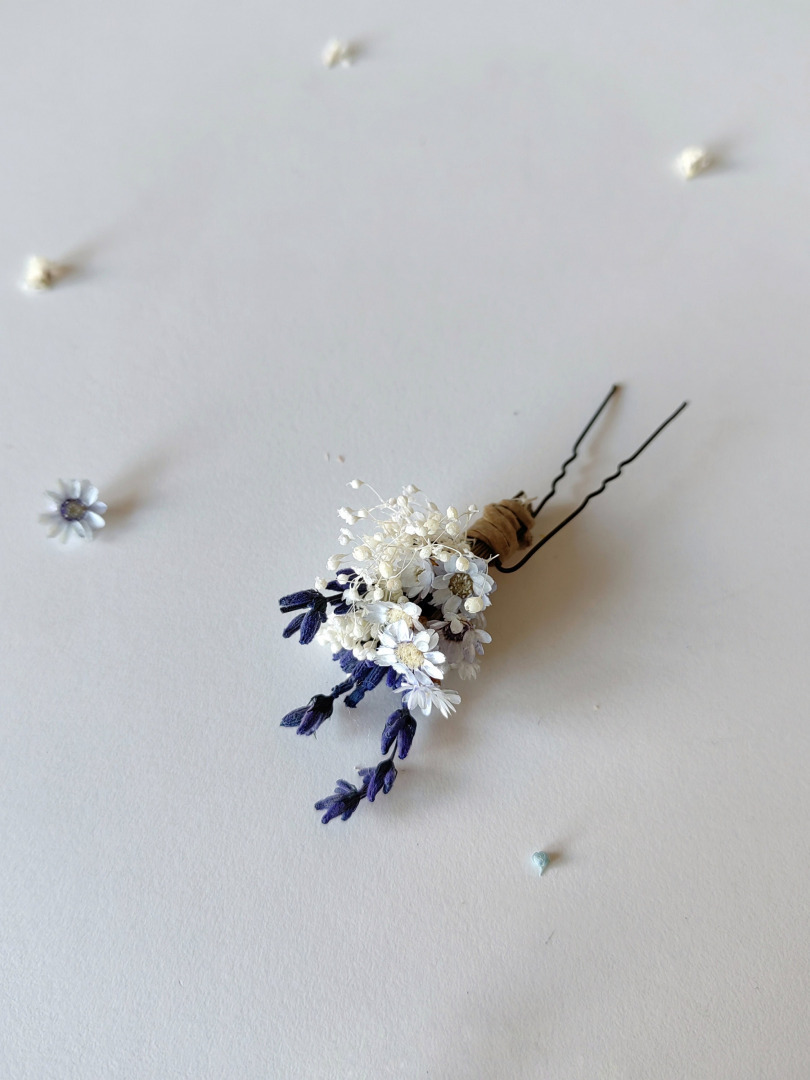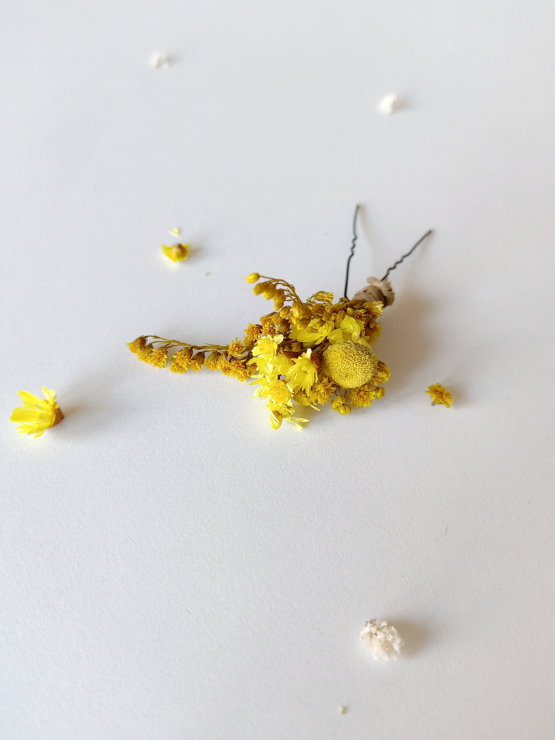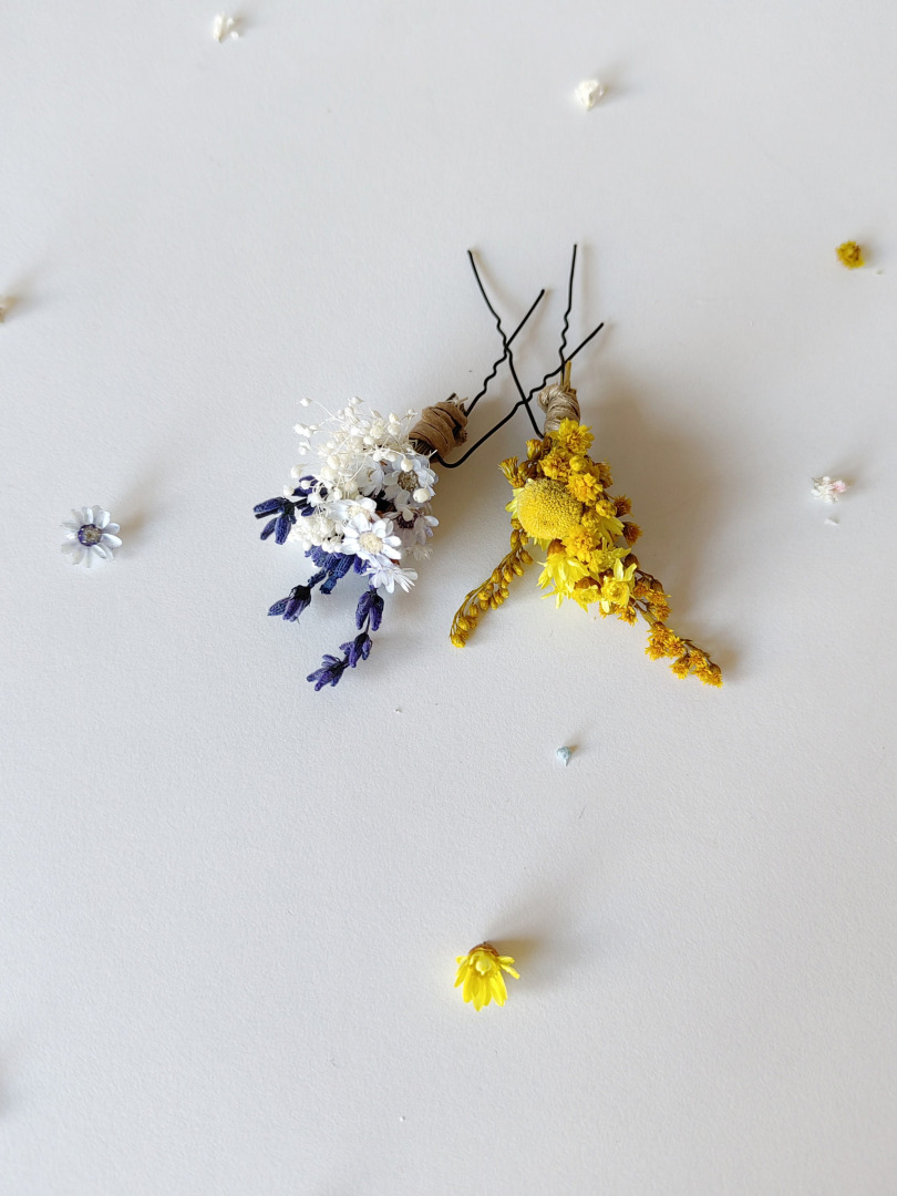 Natural flower hairpins in yellow and blue/white colour. Perfect for bridal hairstyle, other events or everyday look.