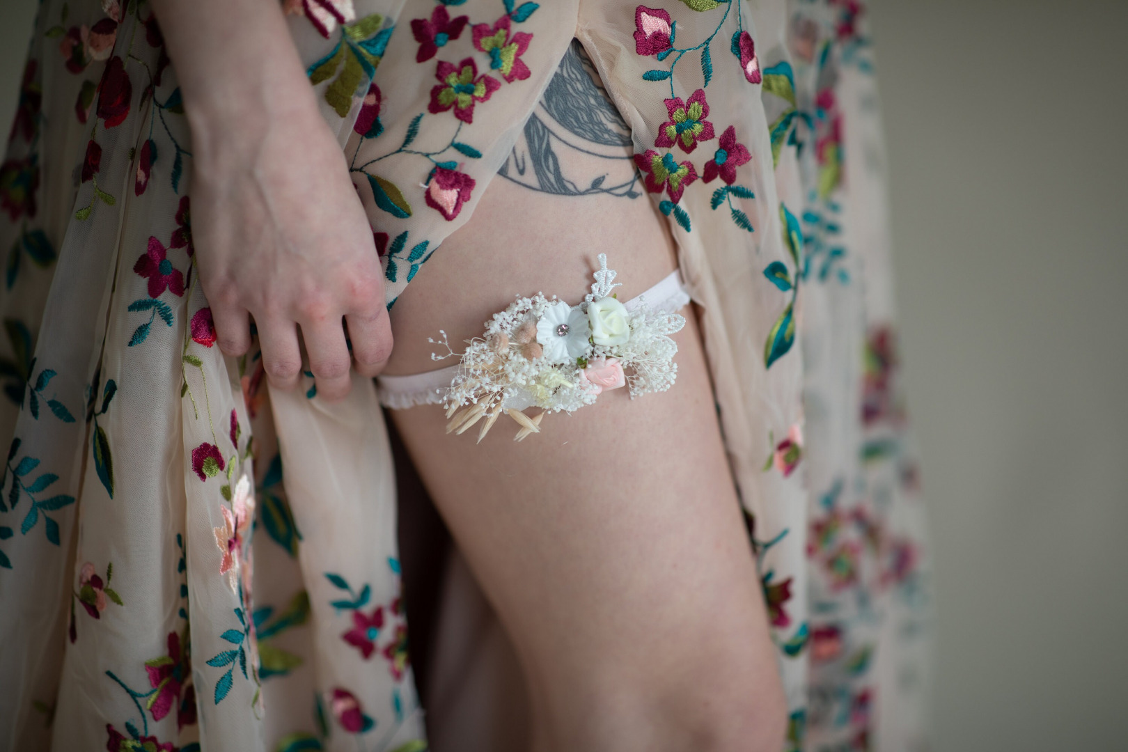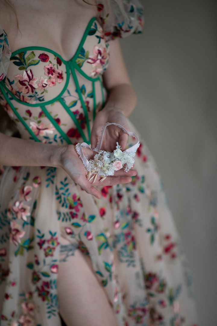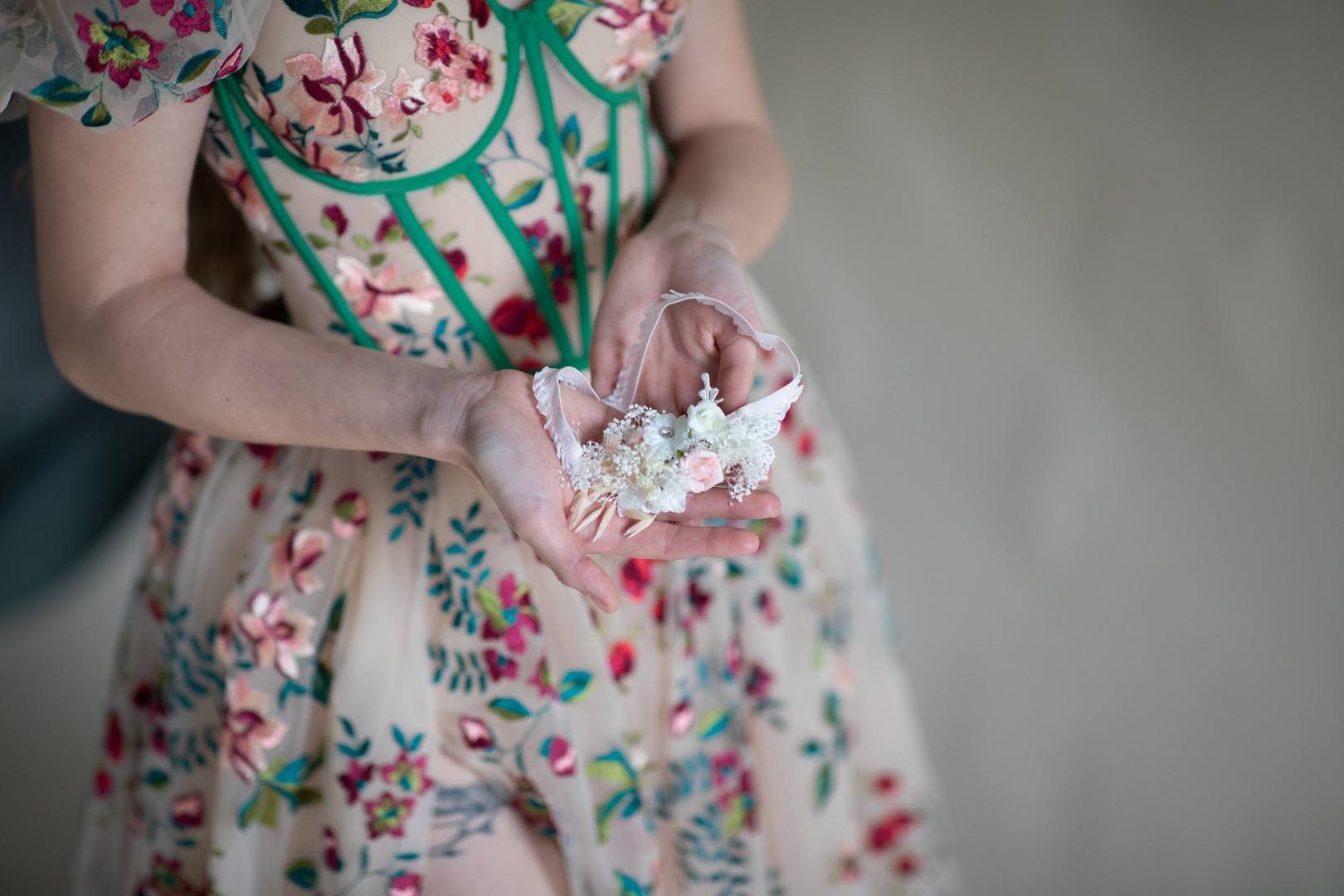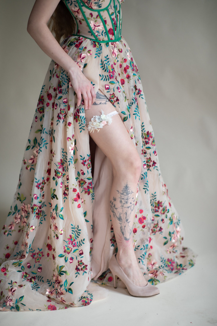 Kvetinový podväzok na elastickej podväzkovej gumičke. Pri objednávke uveďte požadovaný obvod stehna.