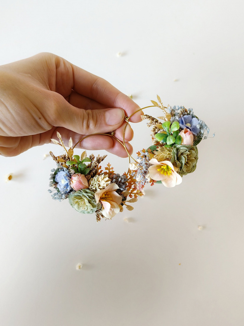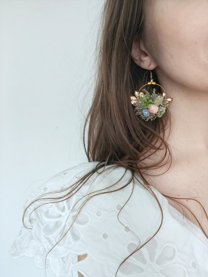 Flower earrings Circle colorful earrings Wedding jewellery Garden wedding Bridal accessories Bridal jewelry Boho wedding Flower jewellery