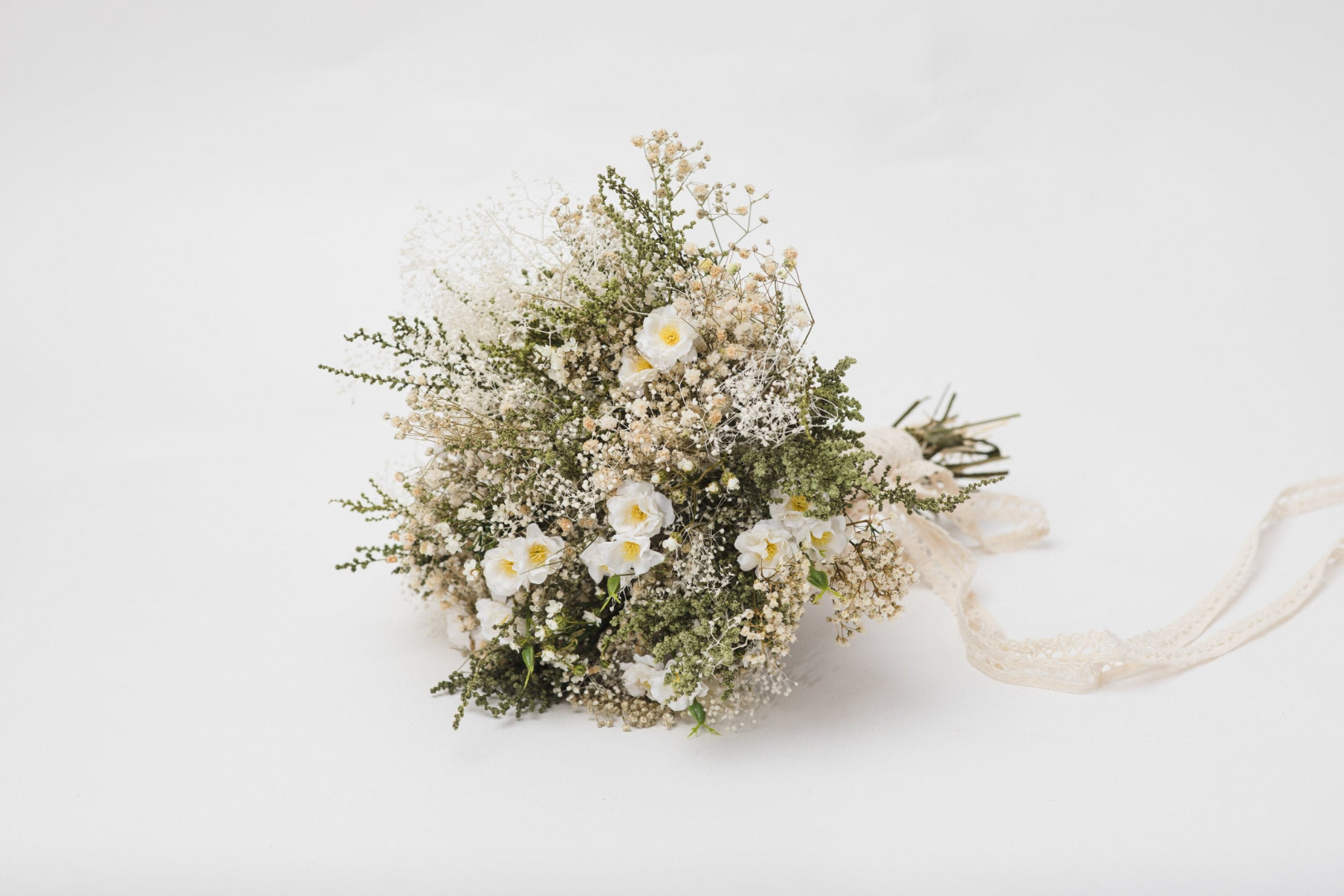 Svadobná boho kytica zo sušených a konzervovaných materiálov. Životnosť kytice je pri správnom skladovaní a starostlivosti 10-15 rokov (viac sa dozviete v sekcii STAROSTLIVOSŤ). Kyticu nikdy nedávajte do vody