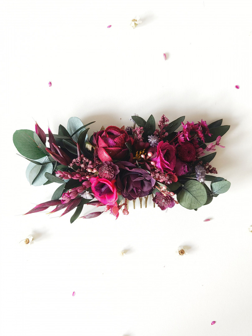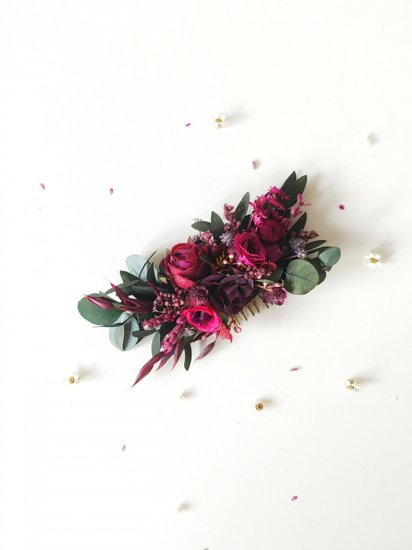 The flower hair comb is made of artificial flowers and preserved materials