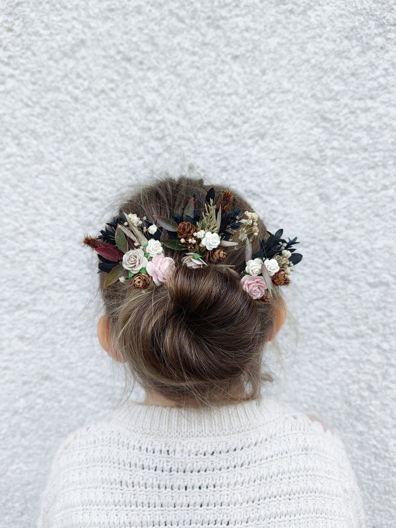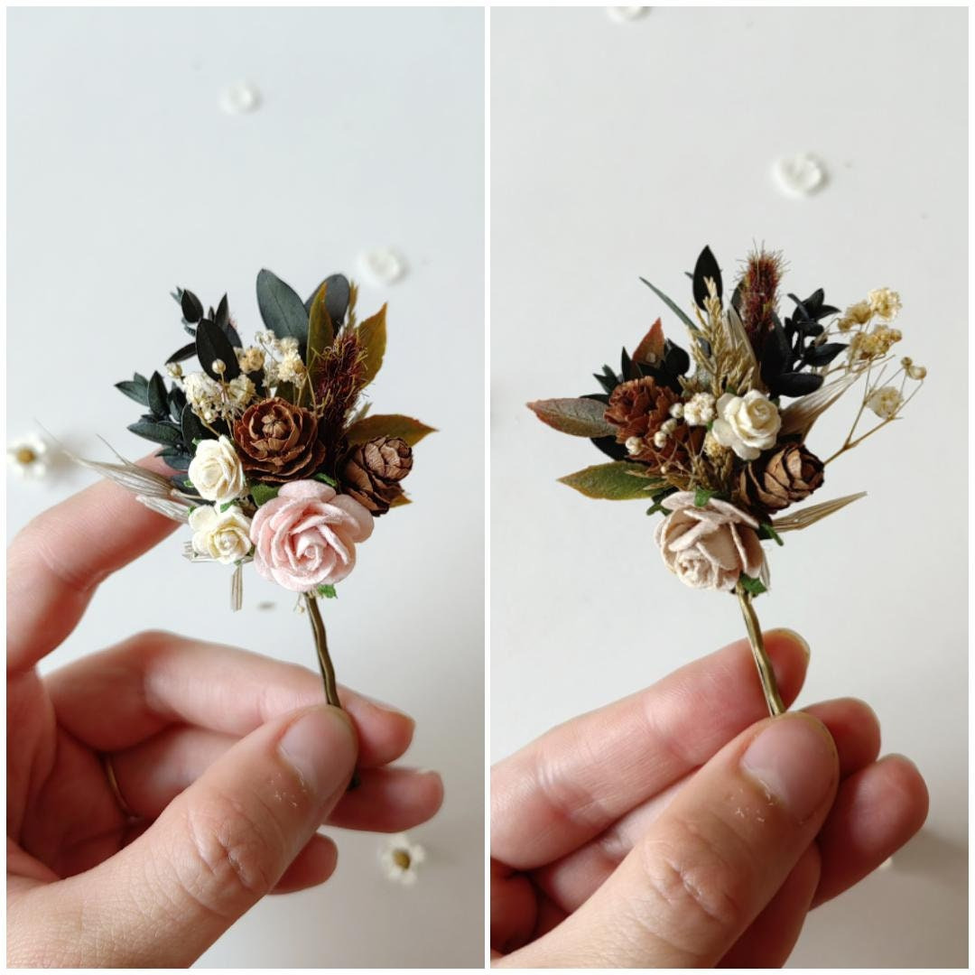Set consists of hair comb in two sizes, hairpins and boutonnieres...