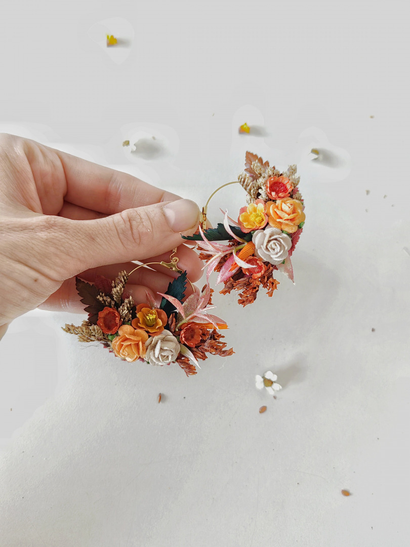 Terracotta circle earrings Orange wedding flower earrings Circle flower earrings Autumn design Wedding jewellery Romantic earrings Magaela