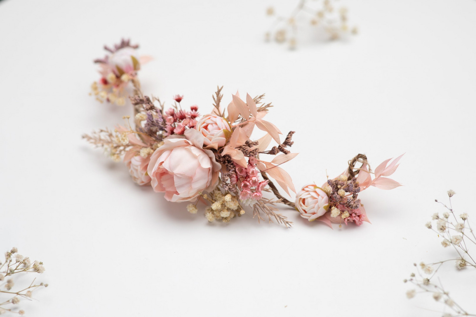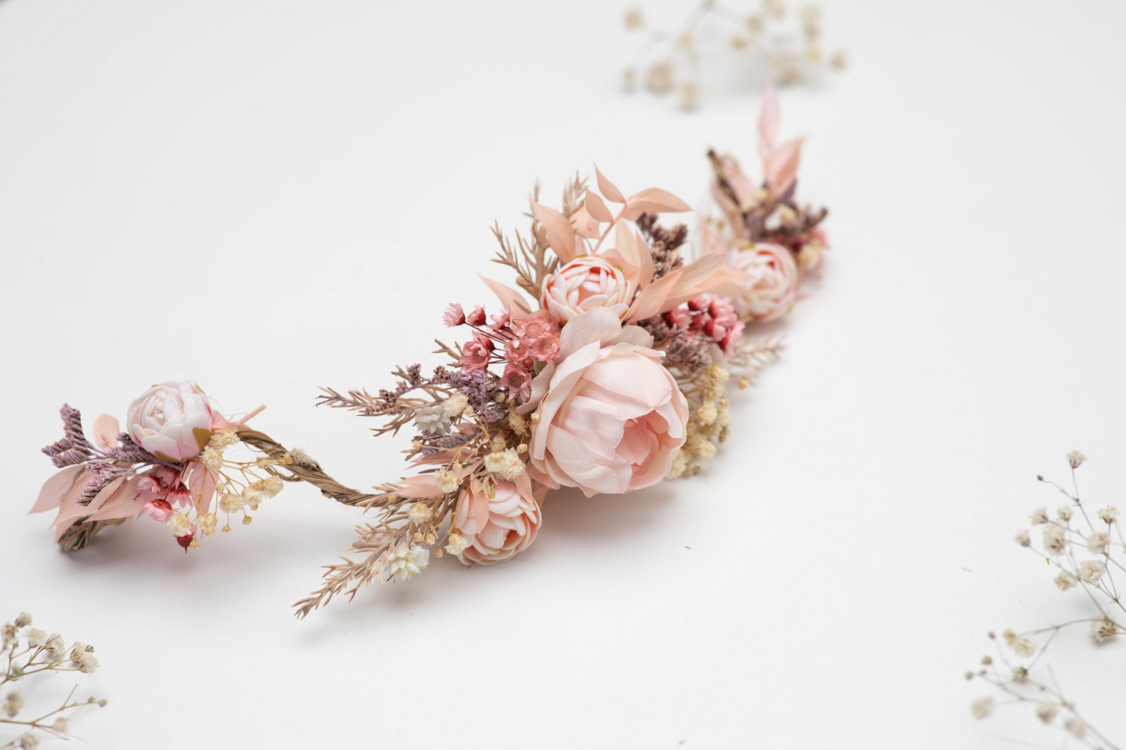 Blush shapable bridal vine, Hair flowers, Romantic bridal accessories, Pale pink flower comb, Wedding hair comb, Flexible hair vine Bendable