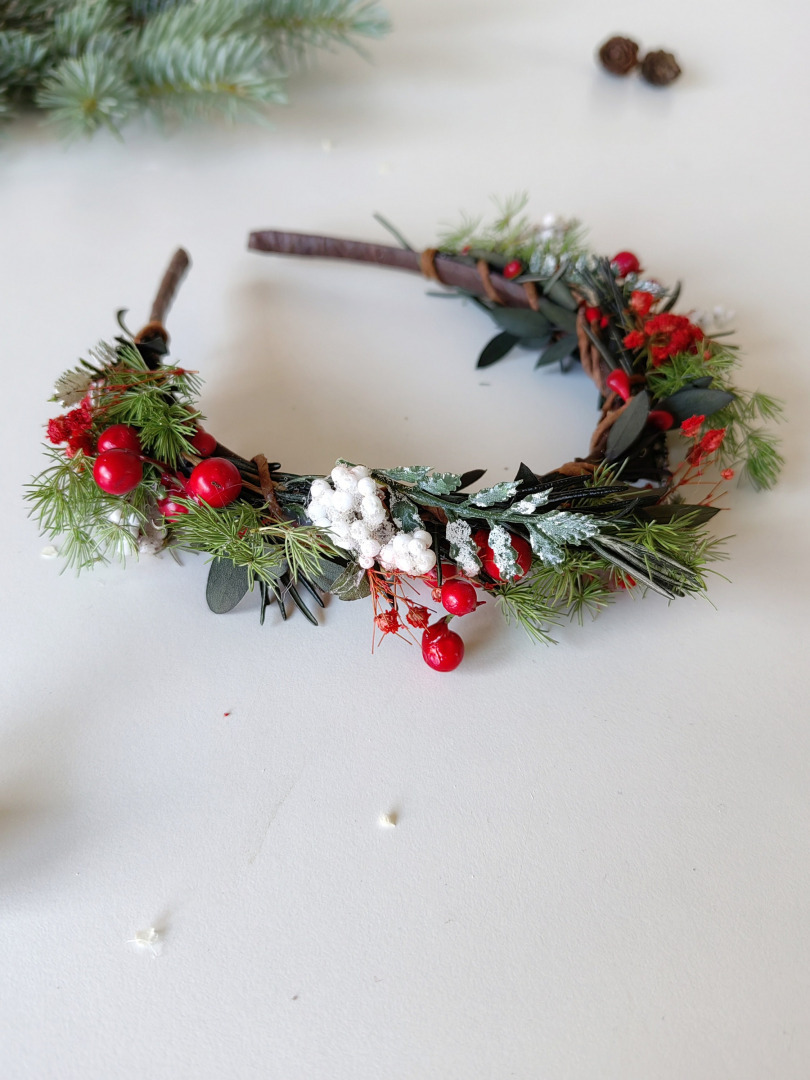 Čelenka je vyrobená z bobuliek, lístkov, trávy a iných drobností určených k aranžovaniu.