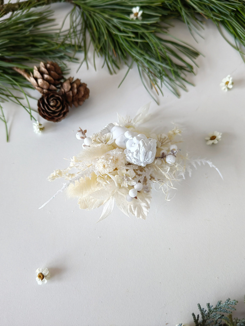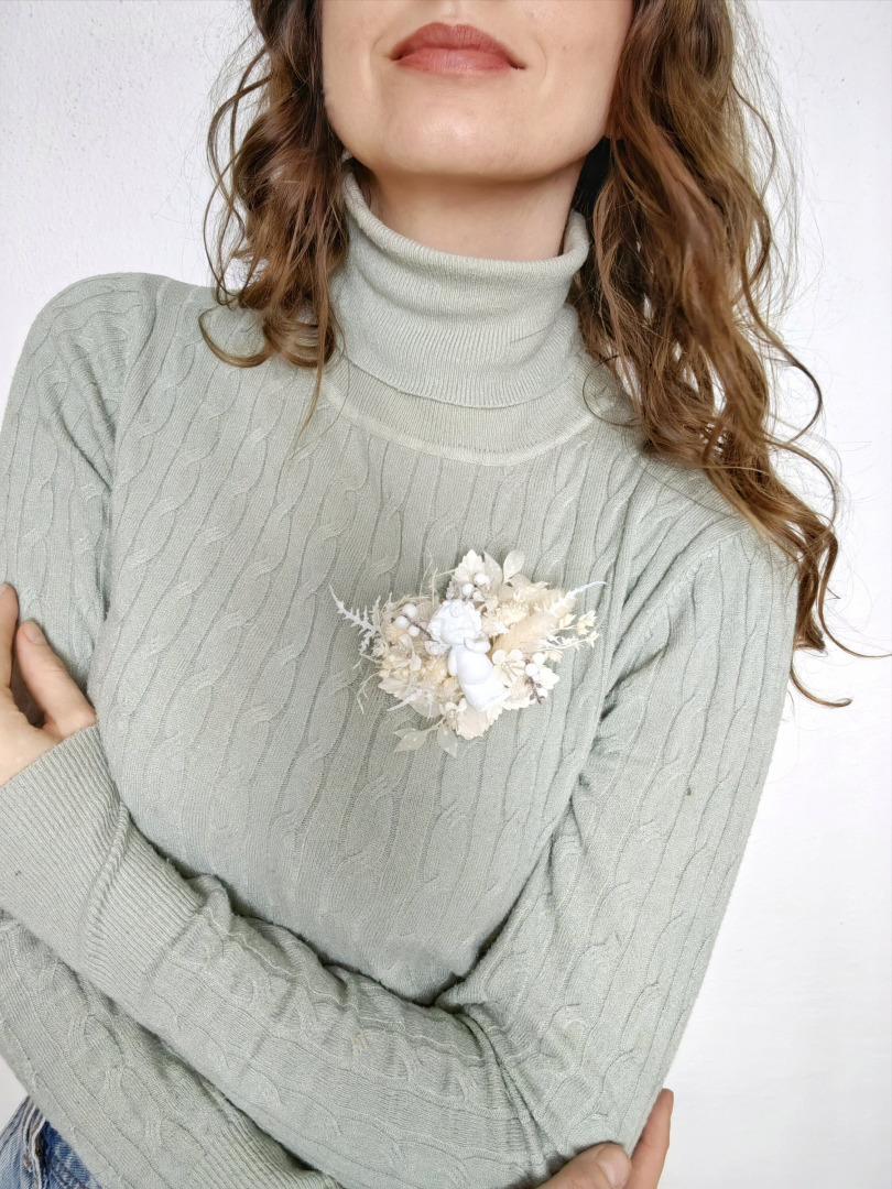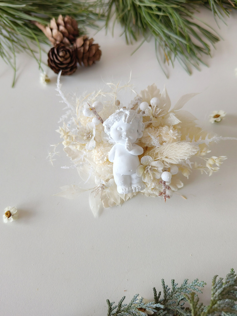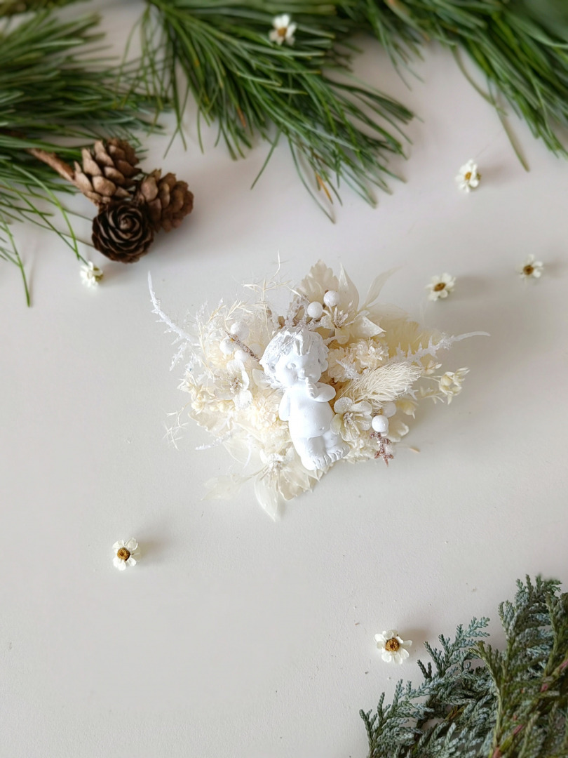 The brooch is made of artificial and preserved material, angel and other arranging material.