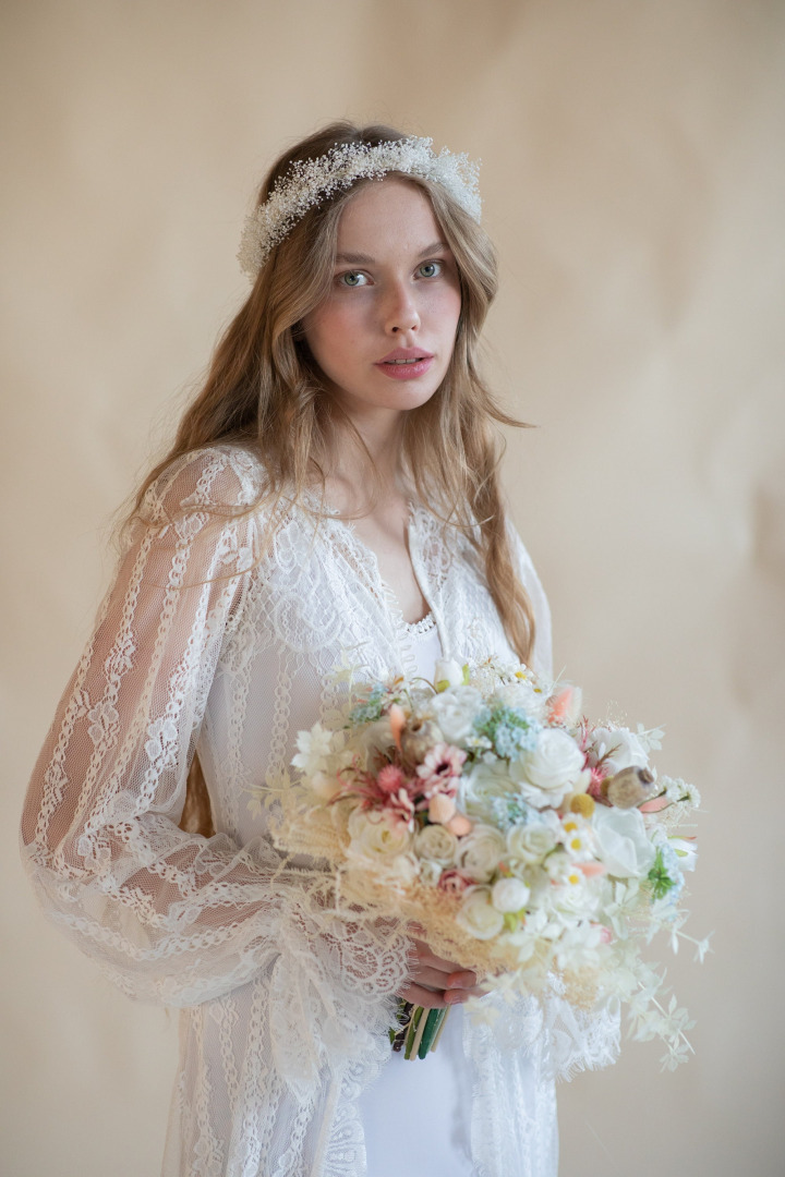 Perfect for weddings, photoshoots, parties or other events. It is made of preserved baby's breath and other material used for arranging.