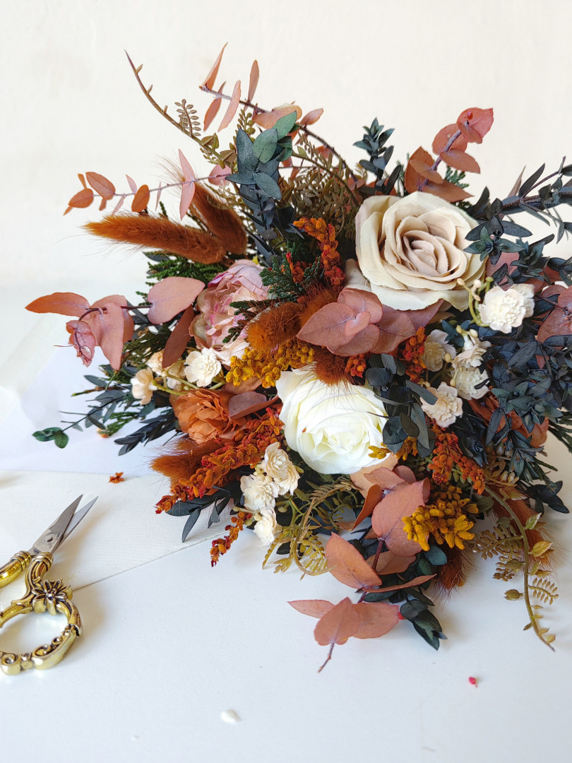 Svadobná boho kytica z umelých a konzervovaných materiálov. Životnosť kytice je ...