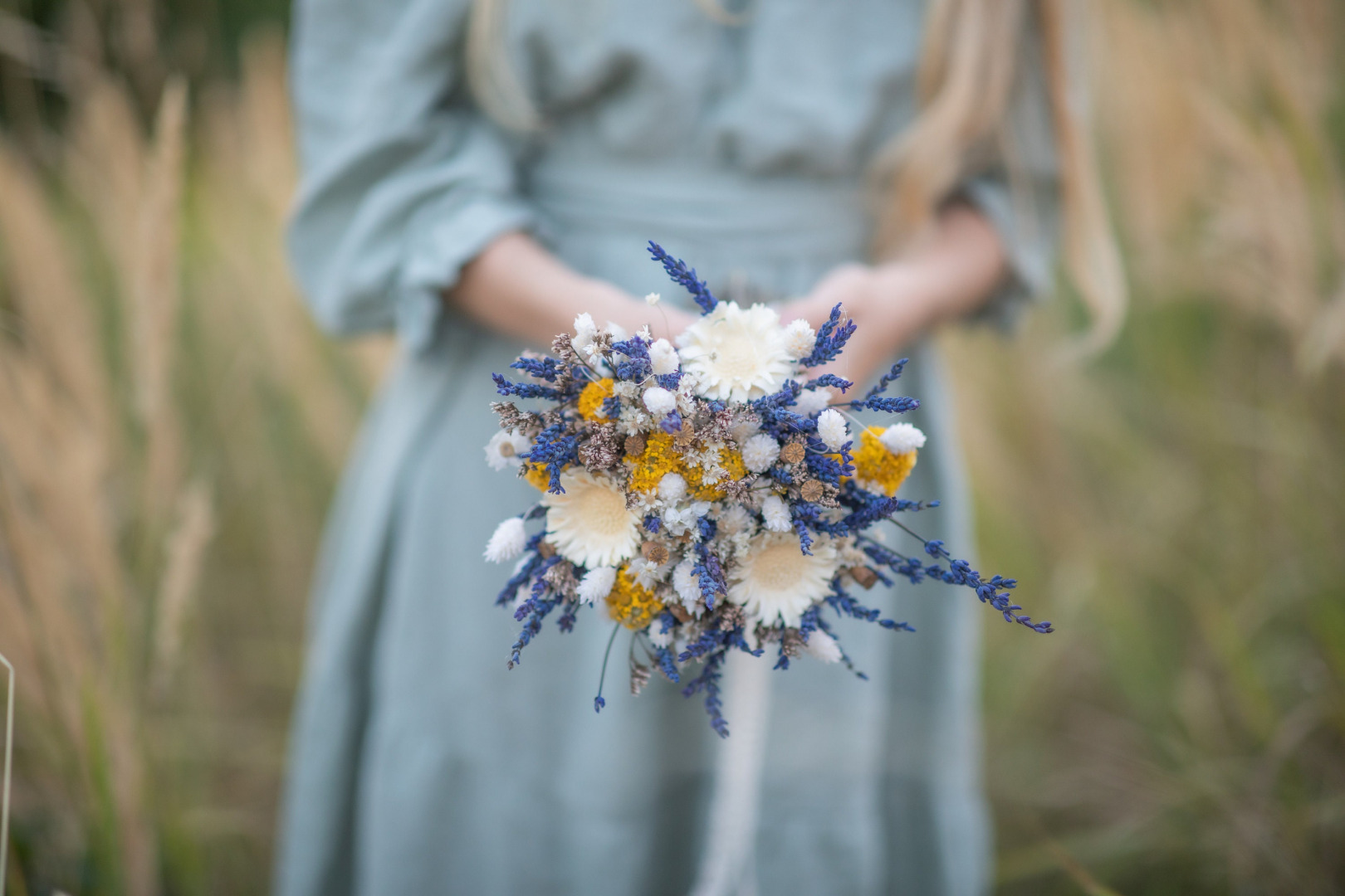 Svadobná boho kytica zo sušených a konzervovaných materiálov. Životnosť kytice je pri správnom skladovaní a starostlivosti 10-15 rokov (viac sa dozviete v sekcii STAROSTLIVOSŤ). Kyticu nikdy nedávajte do vody