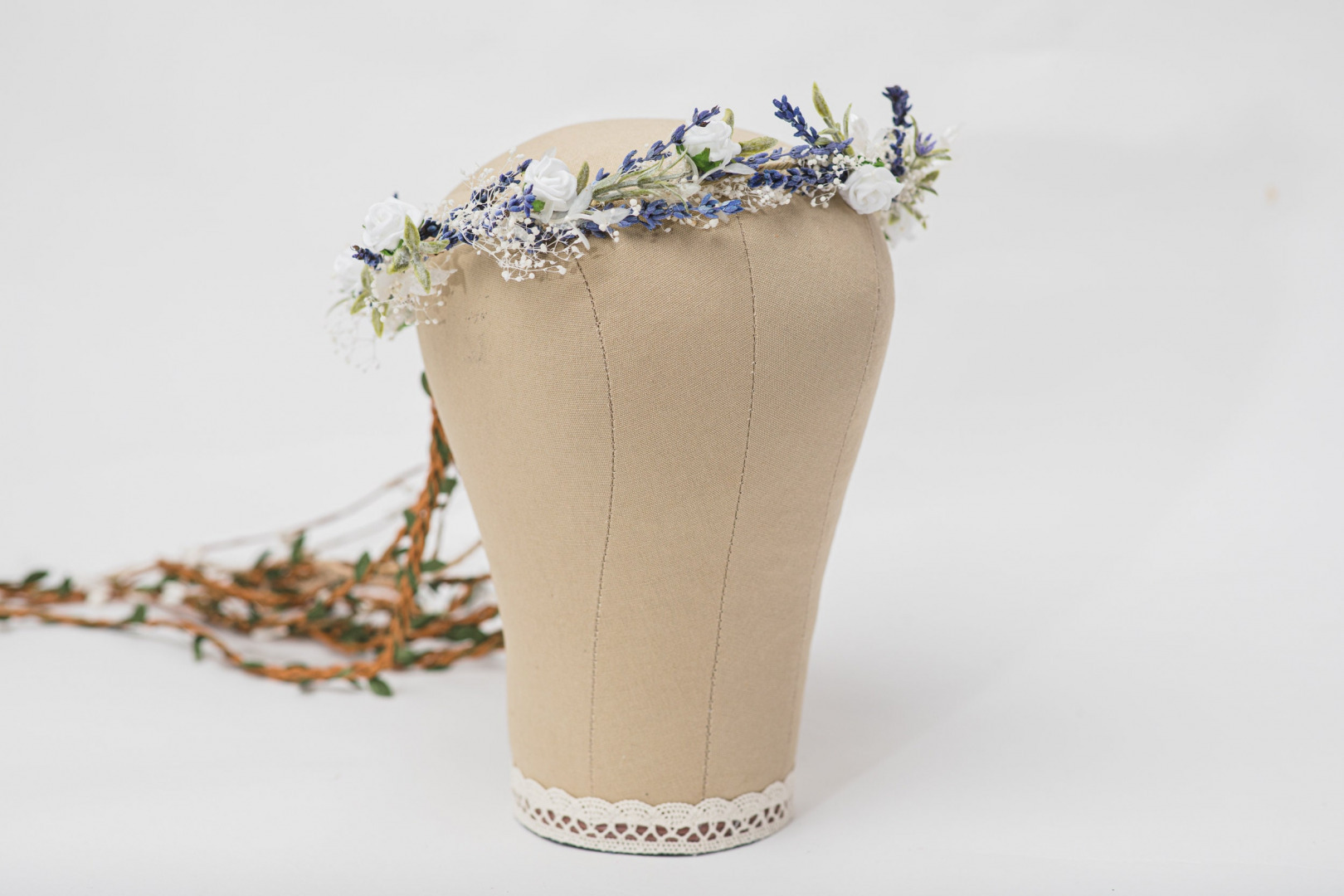 The set consists of hair wreath (can be purchased with or without the brown vines/braids), bigger hair comb, smaller hair comb and boutonniere.