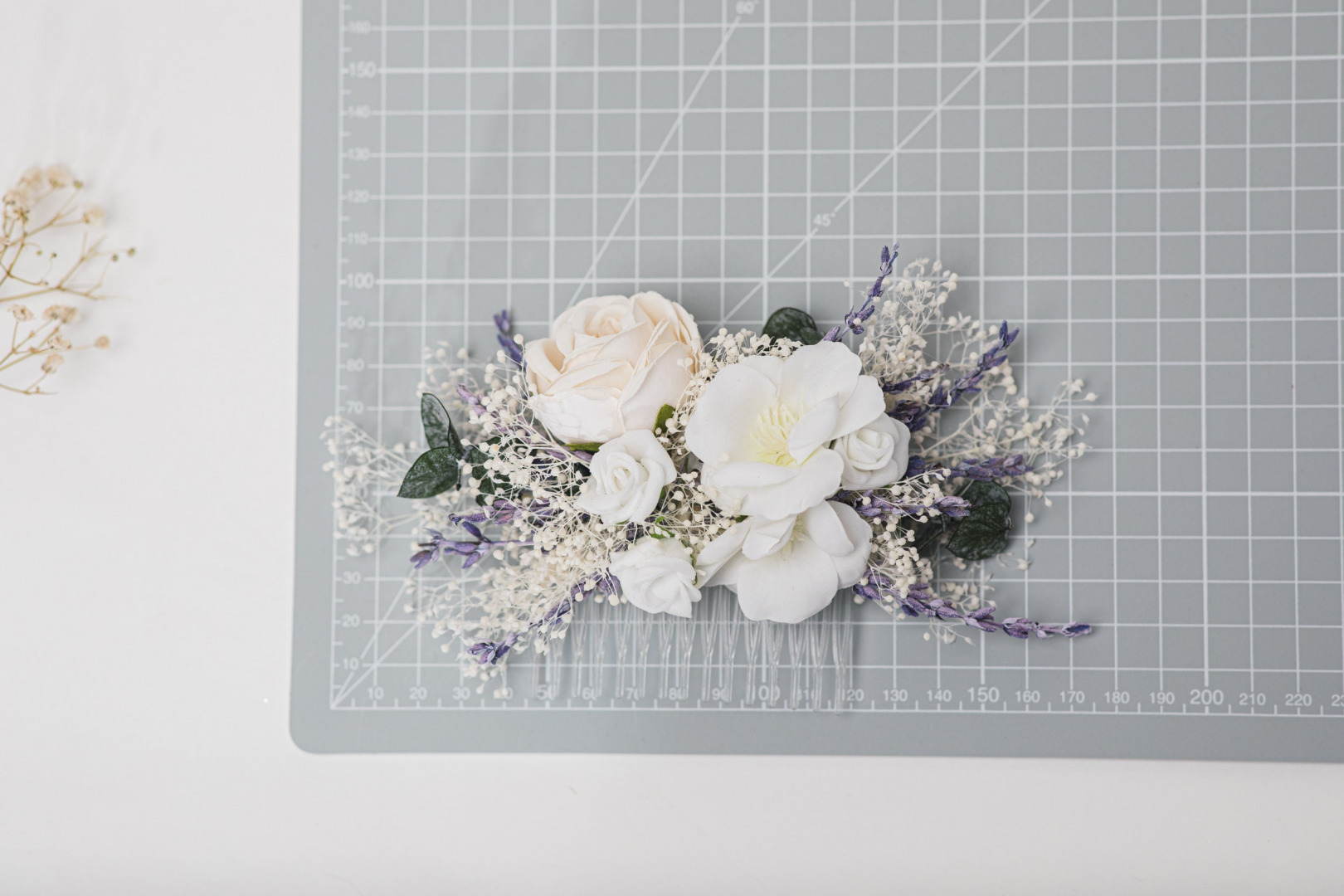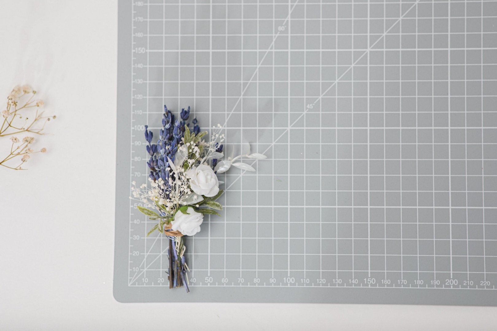 The set is made of real preserved flowers, baby's breath, foam flowers, artificial leaves.
