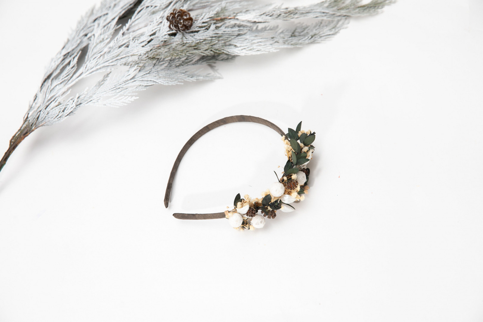 Čelenka je vyrobená z bobuliek, konzervovaných kvietkov, trávy, šišiek a iných drobností určených k aranžovaniu.