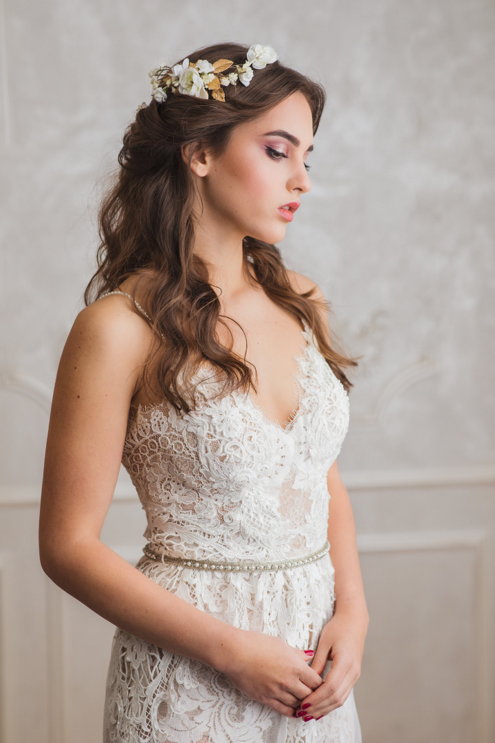 1. flower arrangement/vine (without the comb base, with a loop on each end to be attached by bobby pins)