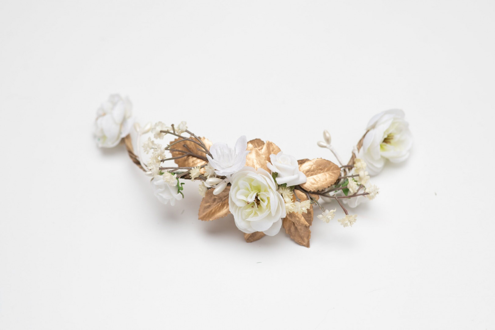 White and gold wedding hair comb or hair arrangement/vine.