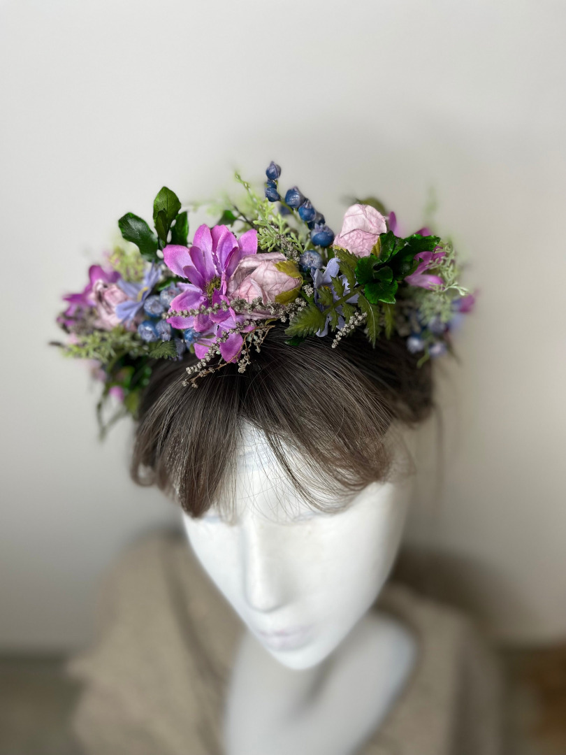 Meadow flower half wreath Purple wedding crown Violet bridal headpiece Lilac flower half wreath Large wedding boho wreath Magaela